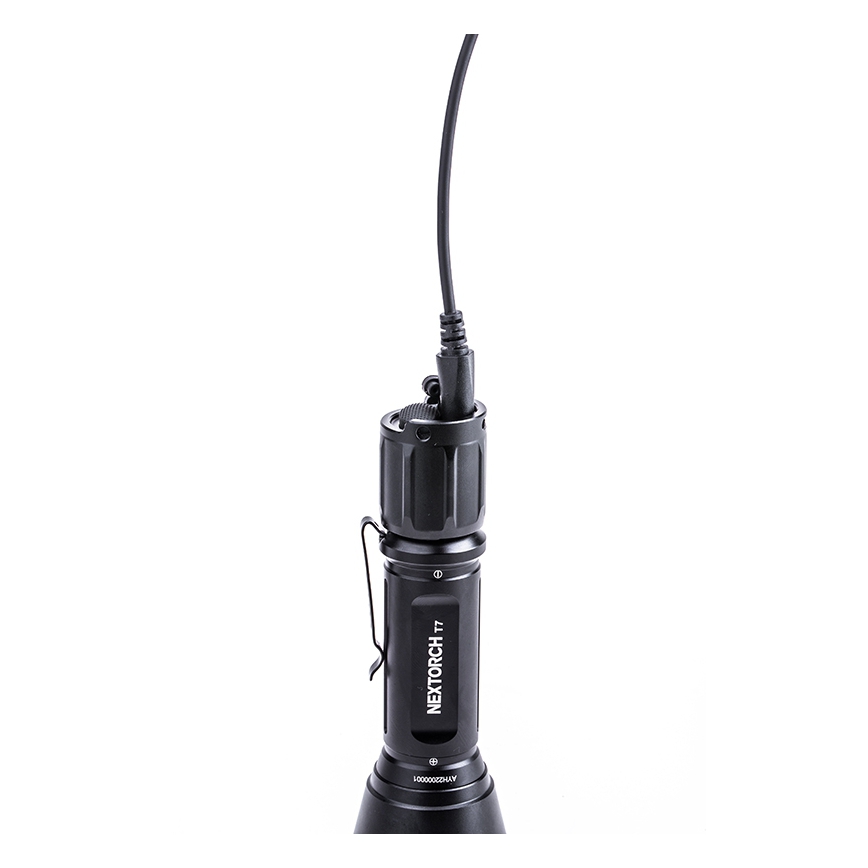 Latarka Nextorch T7 - to taktyczna latarka dalekiego zasięgu o mocy 900 lumenów, w tym mocowanie do lunety (RM85S), wyłącznik żelowy na kablu (TS4-L), bateria 1 x 18650 i mocna latarka T7. Dzięki bardziej wyjątkowej odległości wiązki między latarkami tej samej wielkości do poszukiwań dalekiego zasięgu T7 może pomóc w poszukiwaniach lub wykrywaniu zagrożenia.