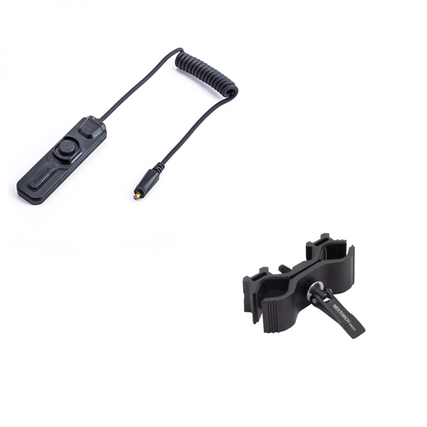 W zestawie dołączony jest uchwyt RM48S - pozwala na szybkie zamocowanie latarki na lufie o średnicy 15-28mm, a także na szynie picantinny i weaver. Ponadto posiada szyny to zamocowania dodatkowych akcesoriów (nie znajdujących się w zestawie).