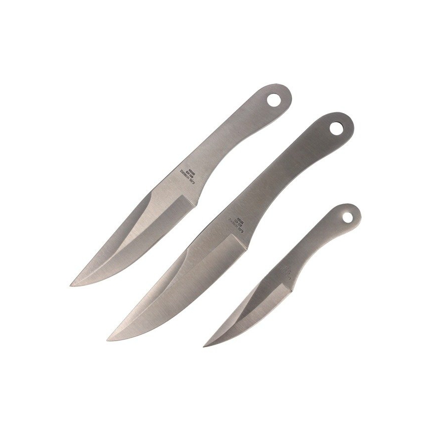 Herbertz Solingen 131324 to zestaw trzech solidnych noży do nauki i treningu rzucania. Wykonane zostały ze stali nierdzewnej AISI 420 o konstrukcji full-tang czyli ostrze i rękojeść są z jednego kawałka stali.