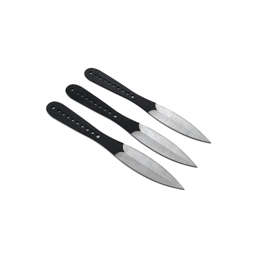 - Komplet 3 noży do rzucania wykonanych ze stali nierdzewnej 440.