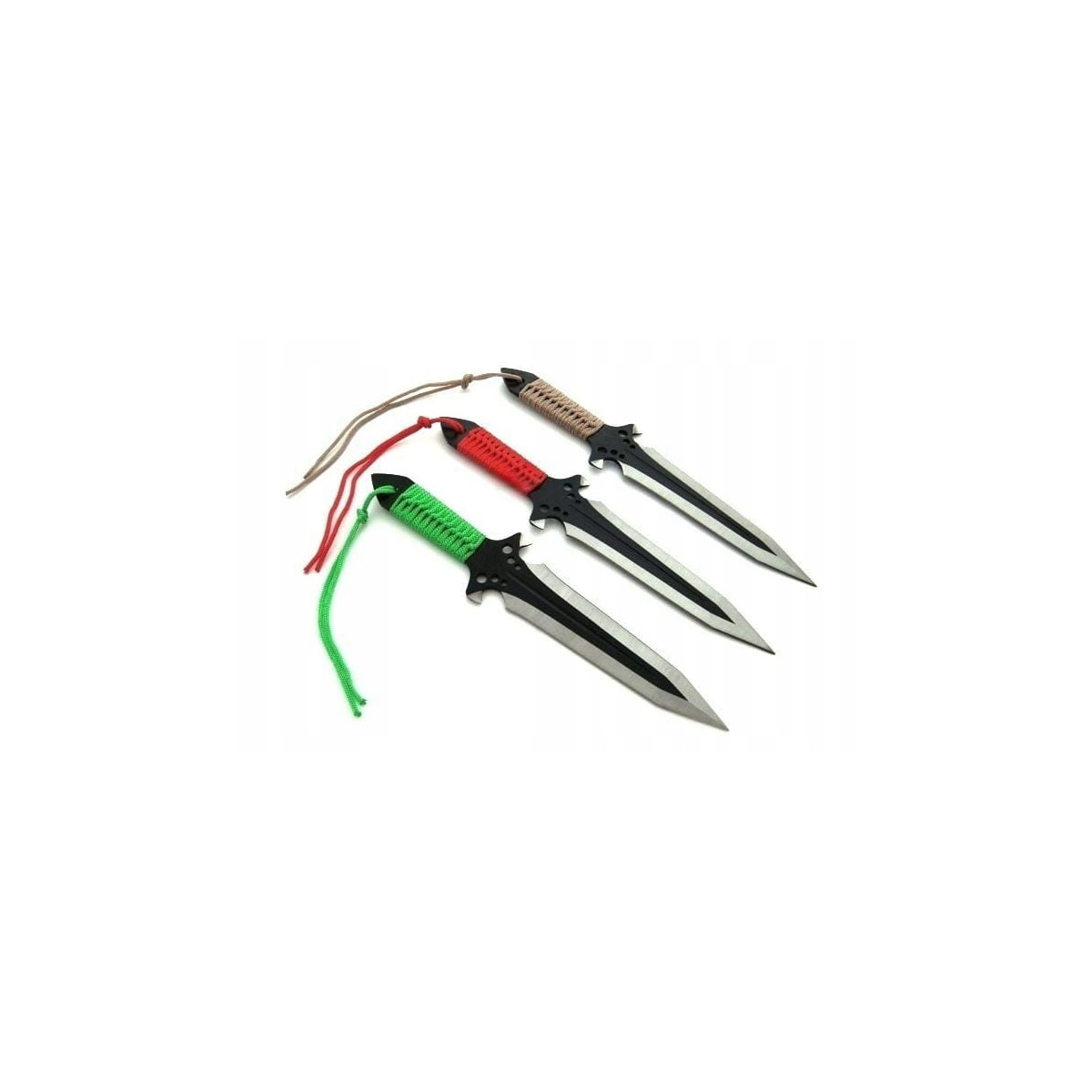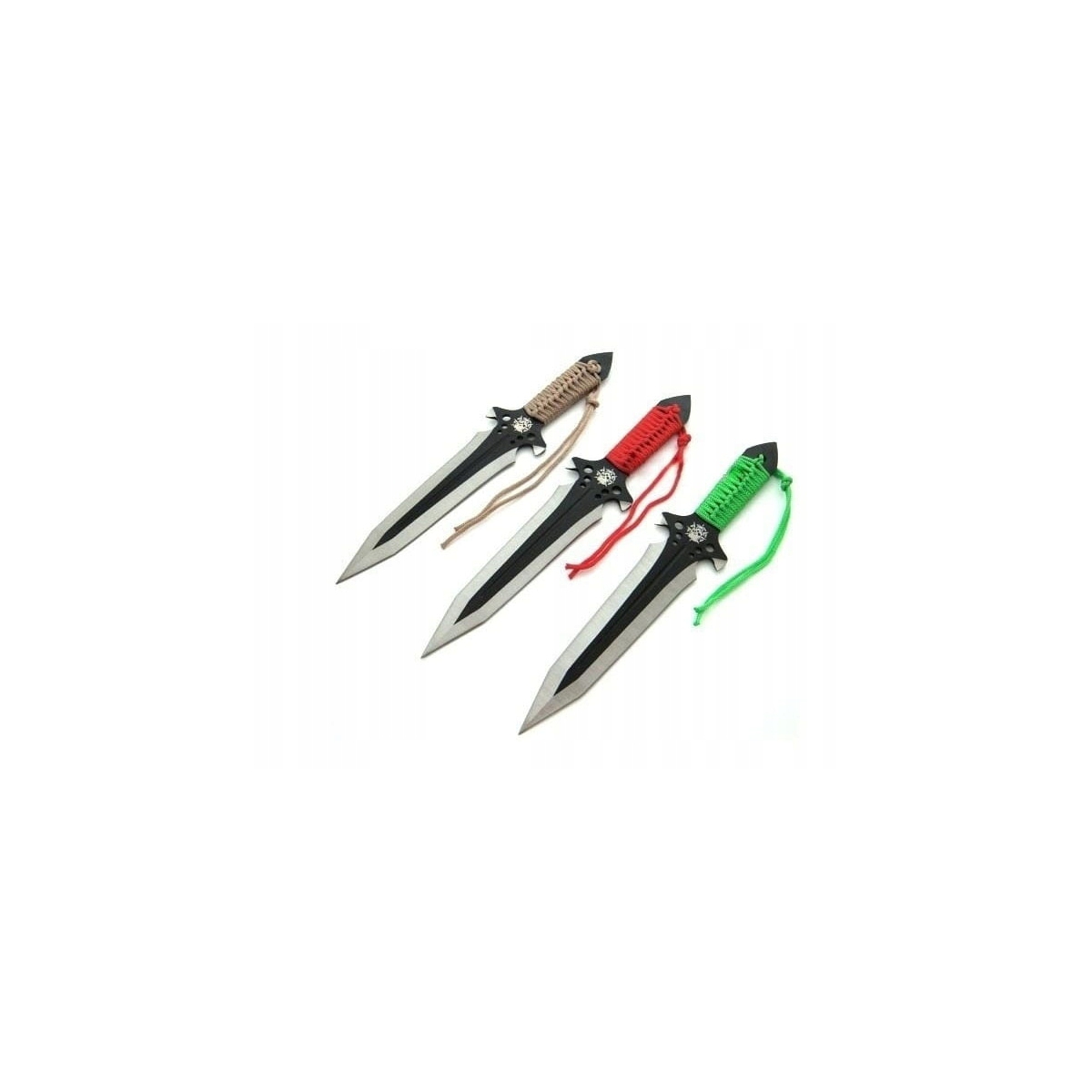- Każdy z noży posiada oplot z paracordu na rękojeści