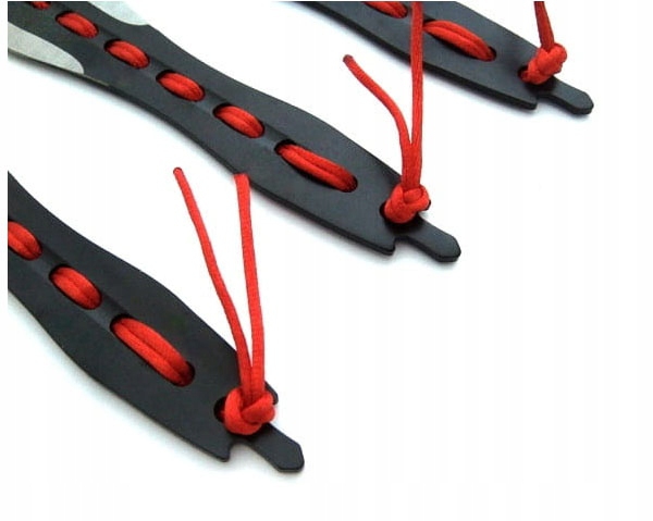 Noże do rzucania rzutki N-410A zostały w całości wykonane ze stali nierdzewnej. Rękojeść posiada oplot z czerwonego paracordu.