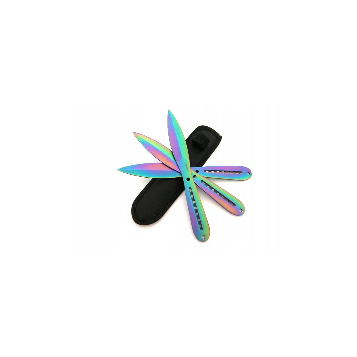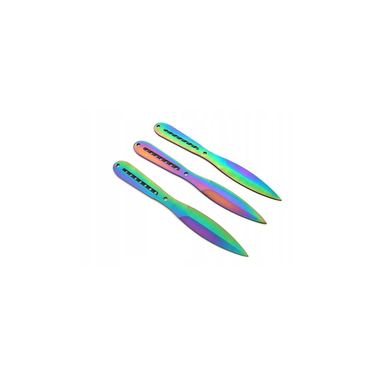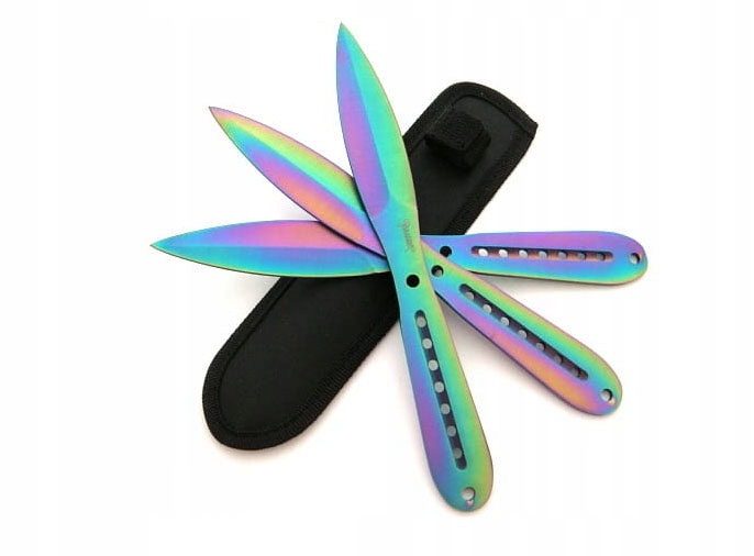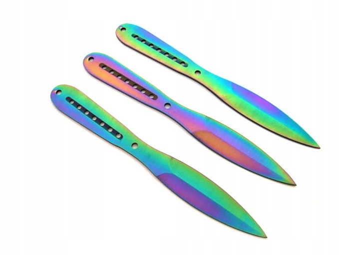 Noże do rzucania rzutki N-420B RAINBOW zostały w całości wykonane ze stali nierdzewnej 440. Otwory znajdujące się w miejscu chwytu odciążają konstrukcje sprawiając, że rzuca się nimi łatwo i precyzyjnie.