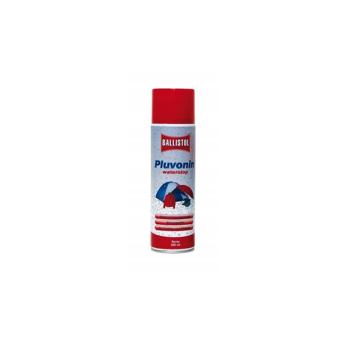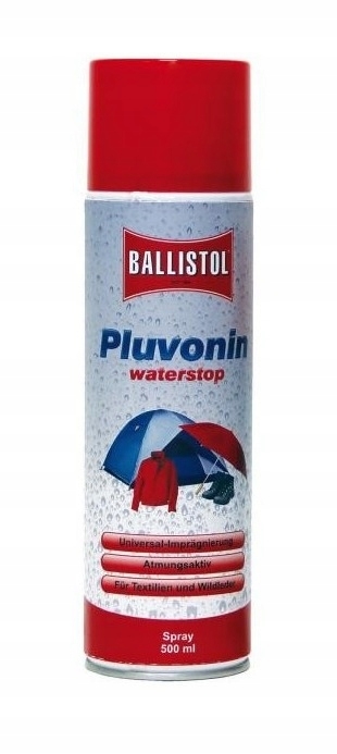 Impregnat do Ubrań BALLISTOL SPRAY 500ml Pluvonin - doskonale zabezpieczający przed deszczem, stosowany do odzieży, butów skórzanych i nubukowych, plecaków, namiotów itp.