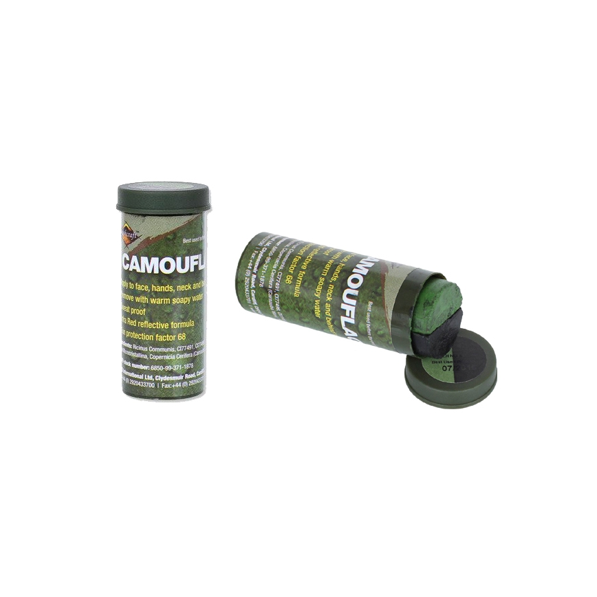 Farba Maskująca Bushcraft BCB 30G- dwukolorowa farba maskująca w sztyfcie. Farba nie jest tłusta, nie rozpływa się pod wpływem potu oraz nie powoduje reakcji alergicznych.