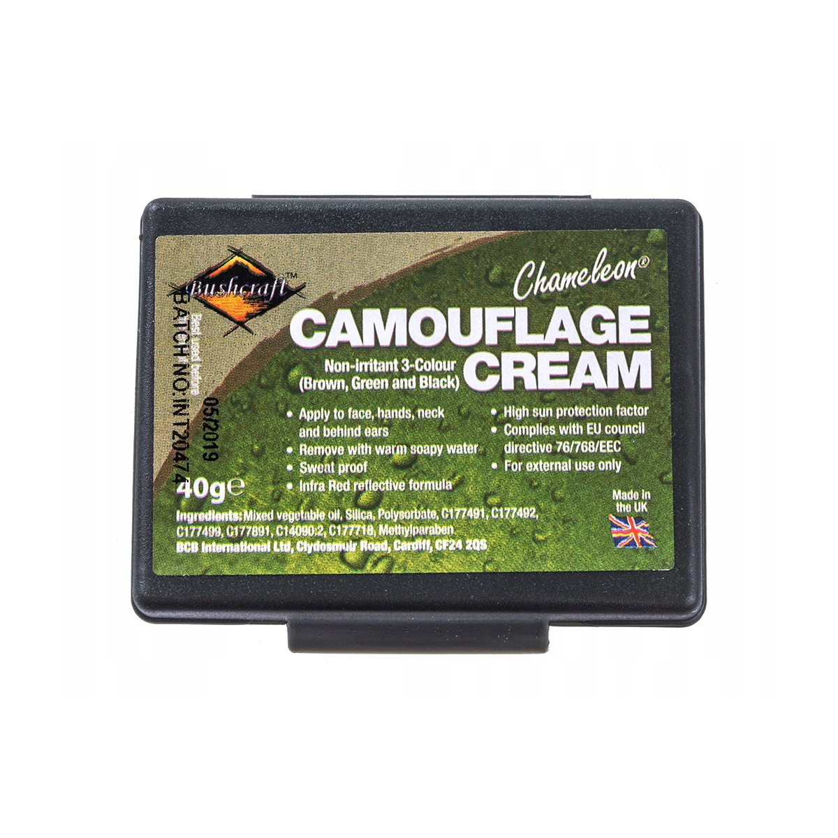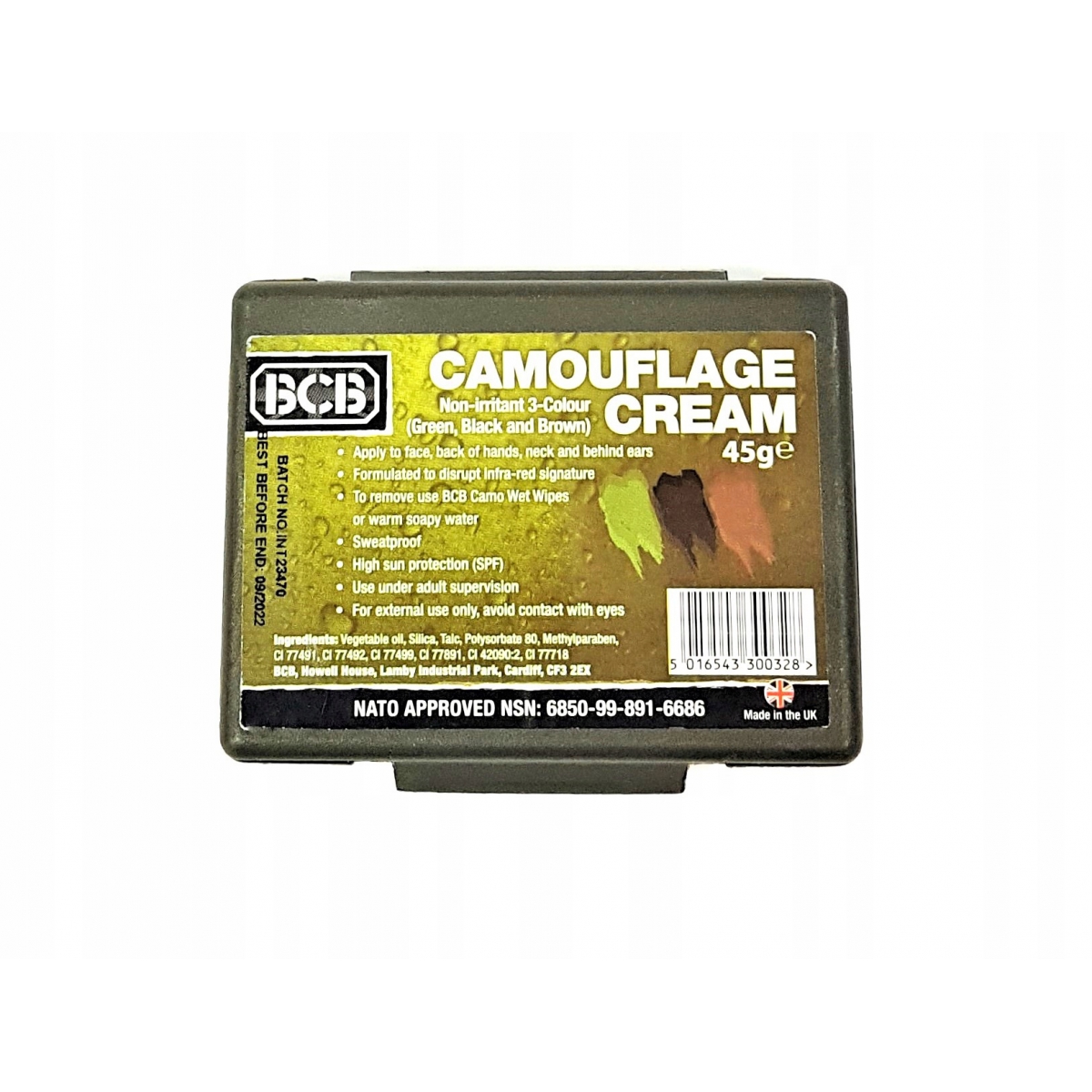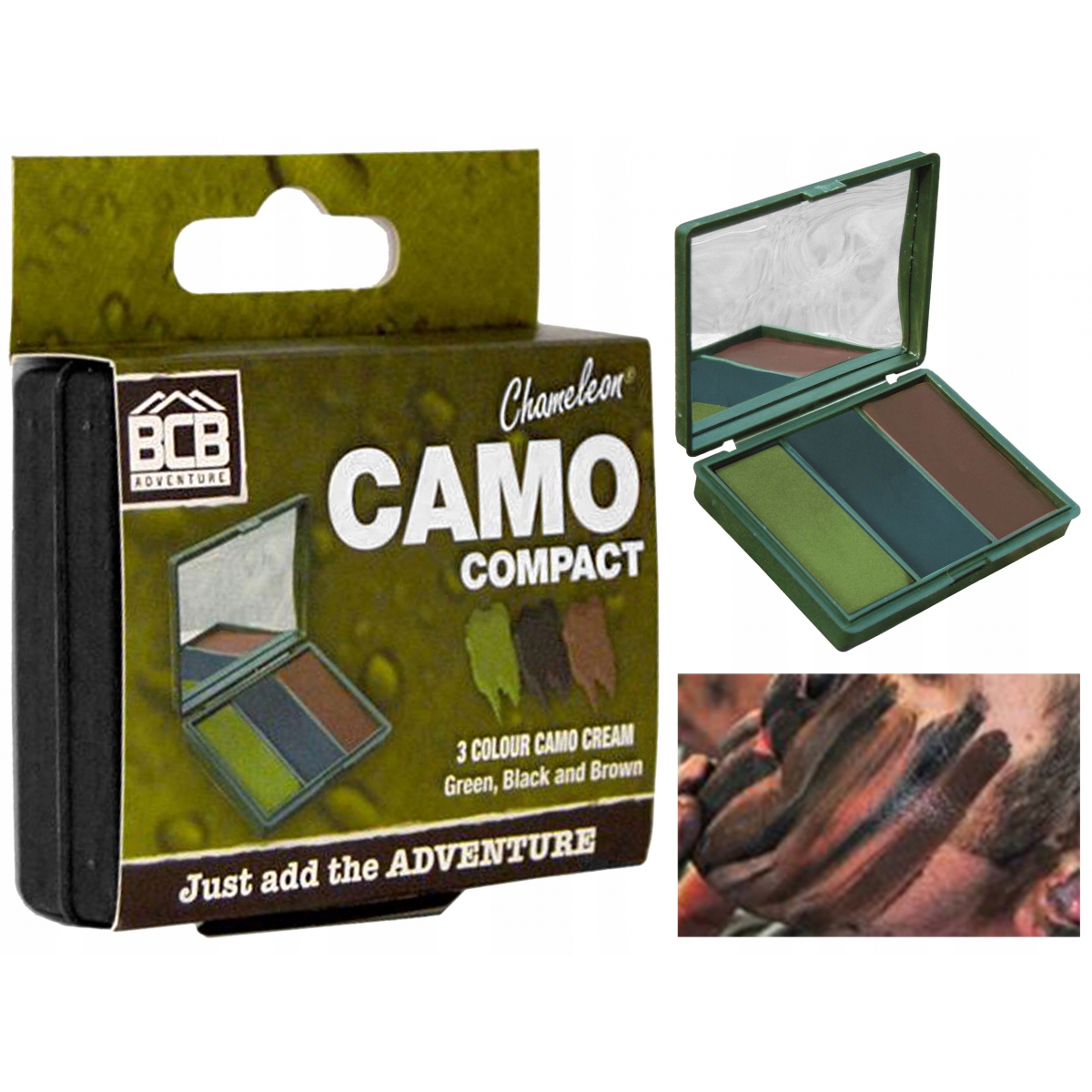 Farba Maskująca Bushcraft BCB 60G- trójkolorowa farba w pudełku z lusterkiem firmy BCB INTERNATIONAL. Pigment jest bardzo gęsty i mocny, więc niewielka ilość pozwoli na pokrycie większej powierzchni farbą.