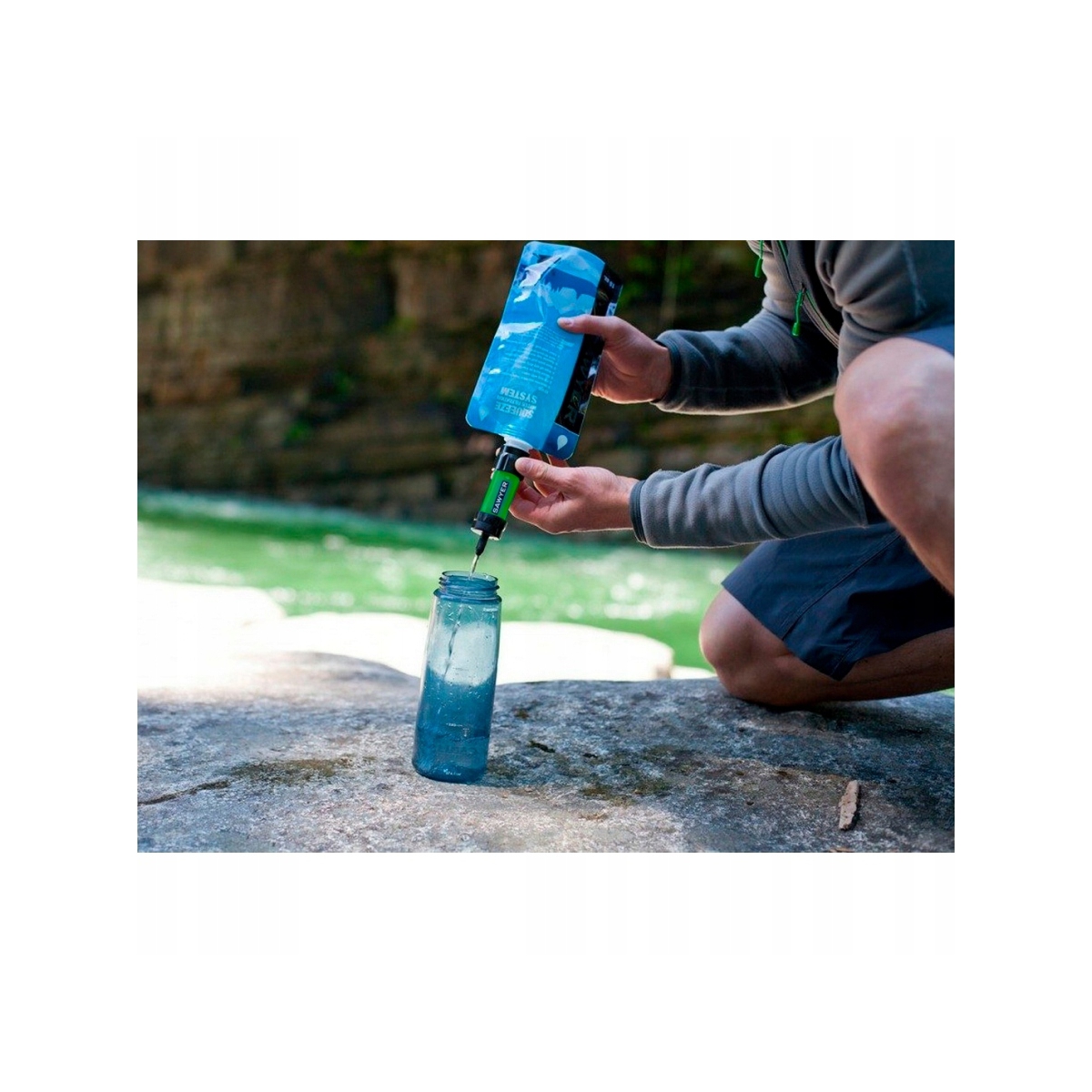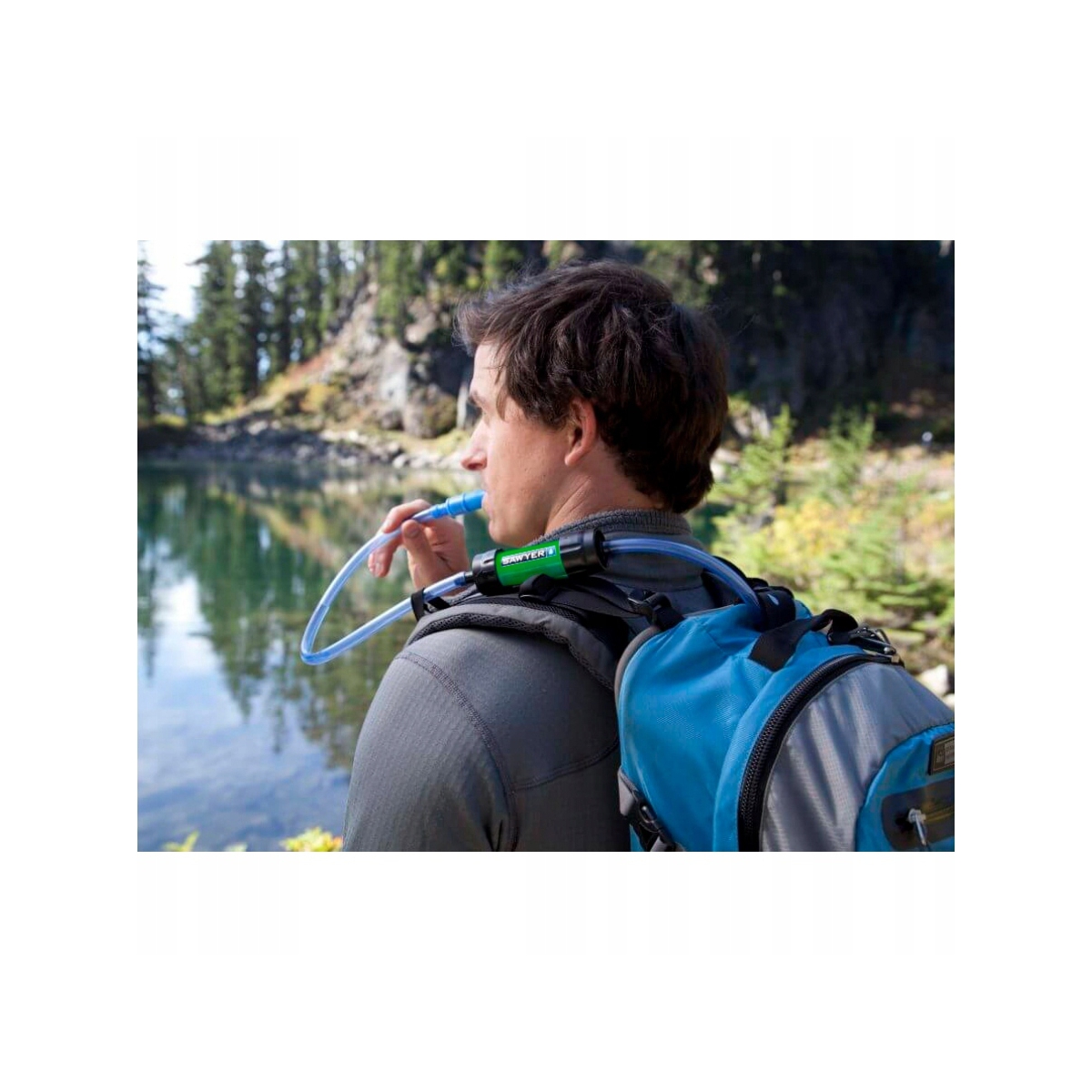 Filtr Sawyer dzięki zewnętrznemu gwintowi posiada możliwość dokręcenia do standardowej butelki PET, dołączonej saszetki typu squeeze, lub worków z systemem hydracyjnym.