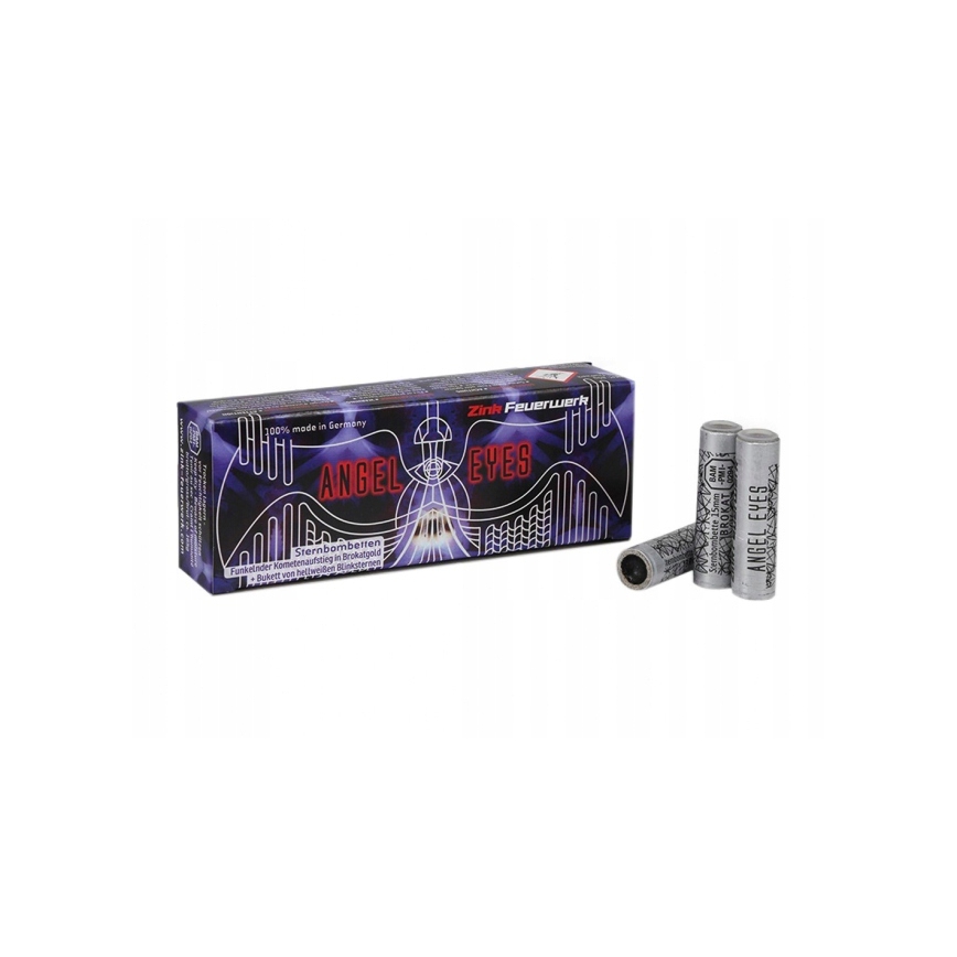 20szt rac Angel Eyes - po wystrzeleniu raca wznosi się na wysokość 20 metrów w formie złotej komety, a opadając snop złotych iskier.