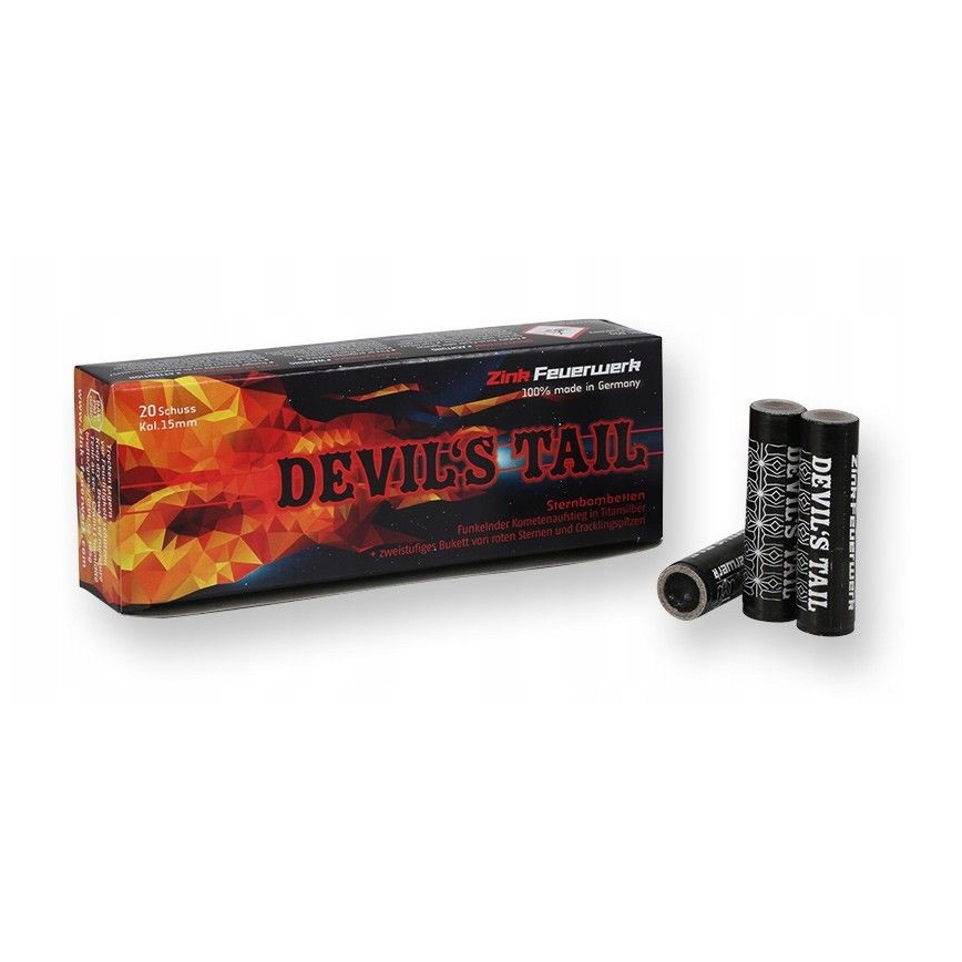 20szt rac Davils Tail - po wystrzeleniu raca wznosi się na wysokość 20 metrów w formie czerwonej komety pozostawiając w tym samym kolorze za sobą ślad.