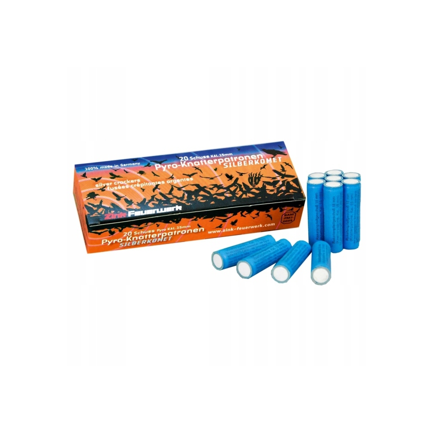 20szt rac Silbercomet - po wystrzeleniu raca wznosi się na wysokość 20 metrów dając gwizd i lecąc zostawia srebrny ogon.