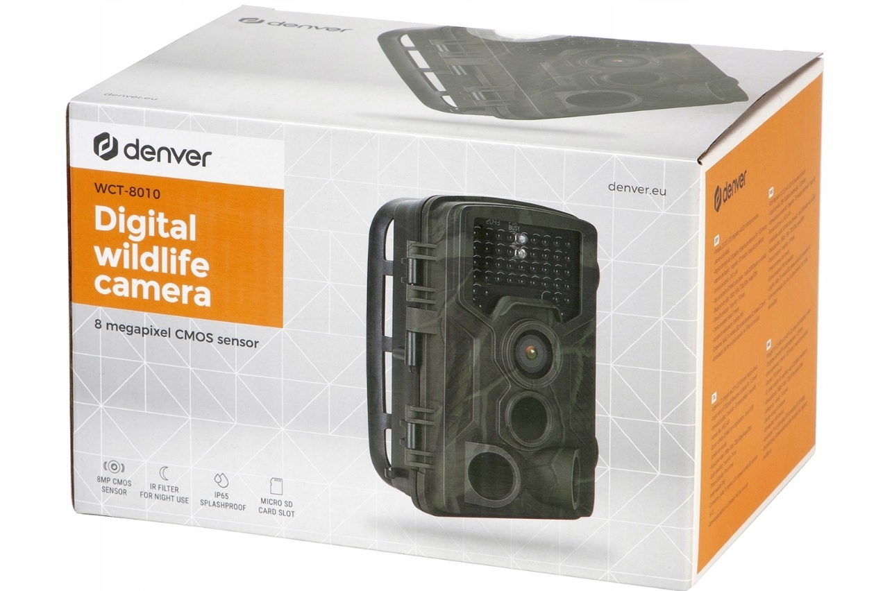 Fotopułapka kamera leśna Denver WCT-8010 Full HD - wysokiej jakości cyfrowa kamera przyrodnicza jest znana jako fotopułapka. Kamera przyrodnicza ma szerokie zastosowanie, gdyż doskonale nadaje się do obserwacji zwierzęcych siedlisk oraz monitoringu. DENVER WCT-8010 Cyfrowa kamera do obserwacji dzikich zwierząt z matrycą CMOS o rozdzielczości 8 megapikseli