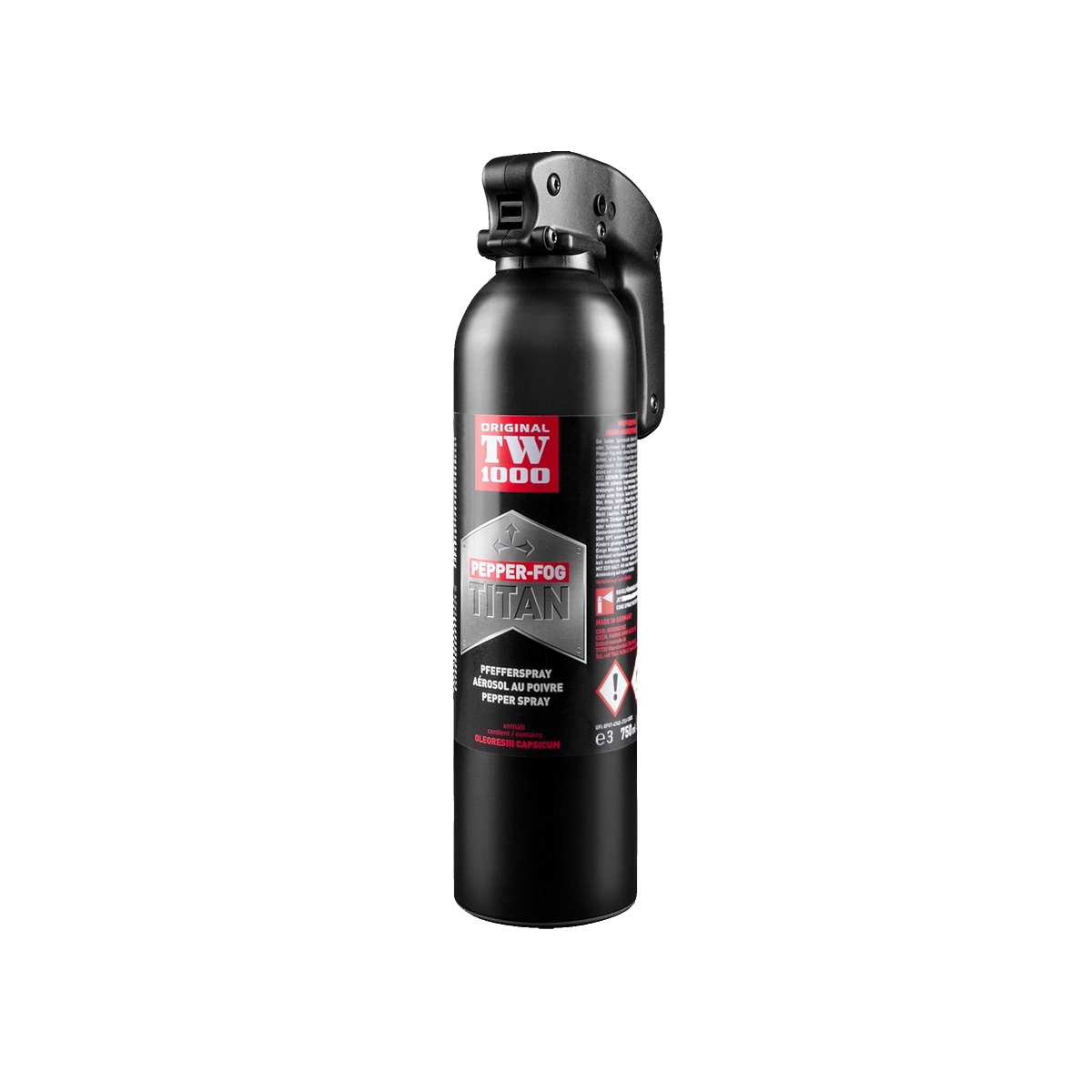 Gaz pieprzowy TW1000 750ml - gaz pieprzowy obronny na bazie środka biologicznego OC, w formie gaśnicy. Skuteczny także na osoby pod wpływem alkoholu i środków odurzających. Bezpośrednim efektem działania gazu jest paraliż układu oddechowego, pieczenie oczu, nosa oraz duszenie uniemożliwiające dalszy atak napastnika. Gaz jest skuteczny w warunkach ekstremalnych tj na deszczu, na wietrze i w pomieszczeniach zamkniętych. Ma duże działanie na agresywne zwierzęta nie czyniąc obrażeń.