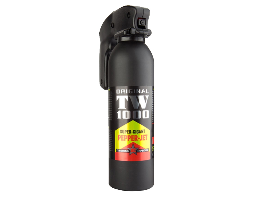 Gaz pieprzowy TW1000 JET 400ml - gaz obronny na bazie środka biologicznego Alkaloidu w formie strumienia, wyprodukowany przez niemiecką firmę Hoernecke Chemie. Skuteczny także na osoby pod wpływem alkoholu i środków odurzających. Bezpośrednim efektem działania gazu jest paraliż układu oddechowego, pieczenie oczu, nosa oraz duszenie uniemożliwiające dalszy atak napastnika. Umożliwia obronę przed dużą liczbą napastników jednocześnie.