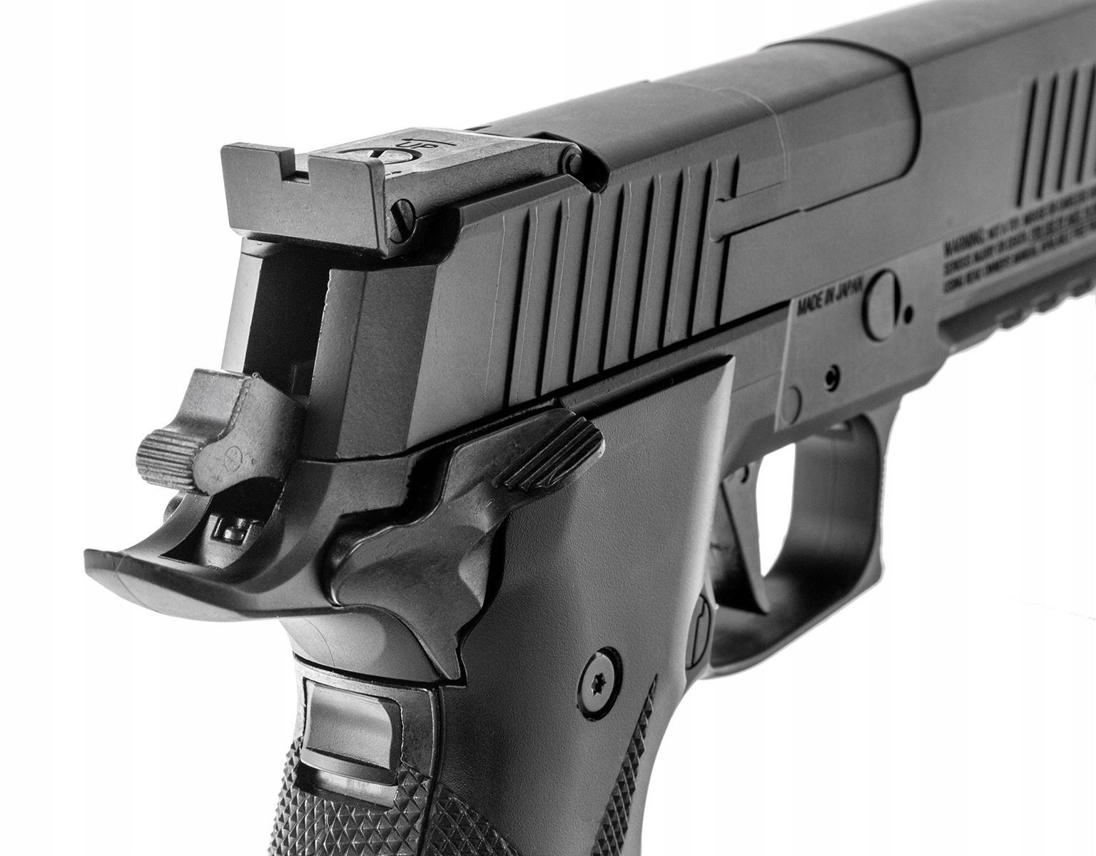 Posiada przyrządy celownicze muszkę i regulowaną w pionie i poziomie szczerbinkę. Chwyt pistoletowy oraz zatrzask magazynka mają antypoślizgowe teksturowanie, dzięki temu pistolet nie wyślizguje się z dłoni. Wyposażony jest w obustronną, skrzydełkową blokadę spustu. Dodatkowo pod lufą znajduję się szyna montażowa RIS 22 mm, do której można dołączyć sprzęt taktyczny np. latarkę czy wskaźnik laserowy.