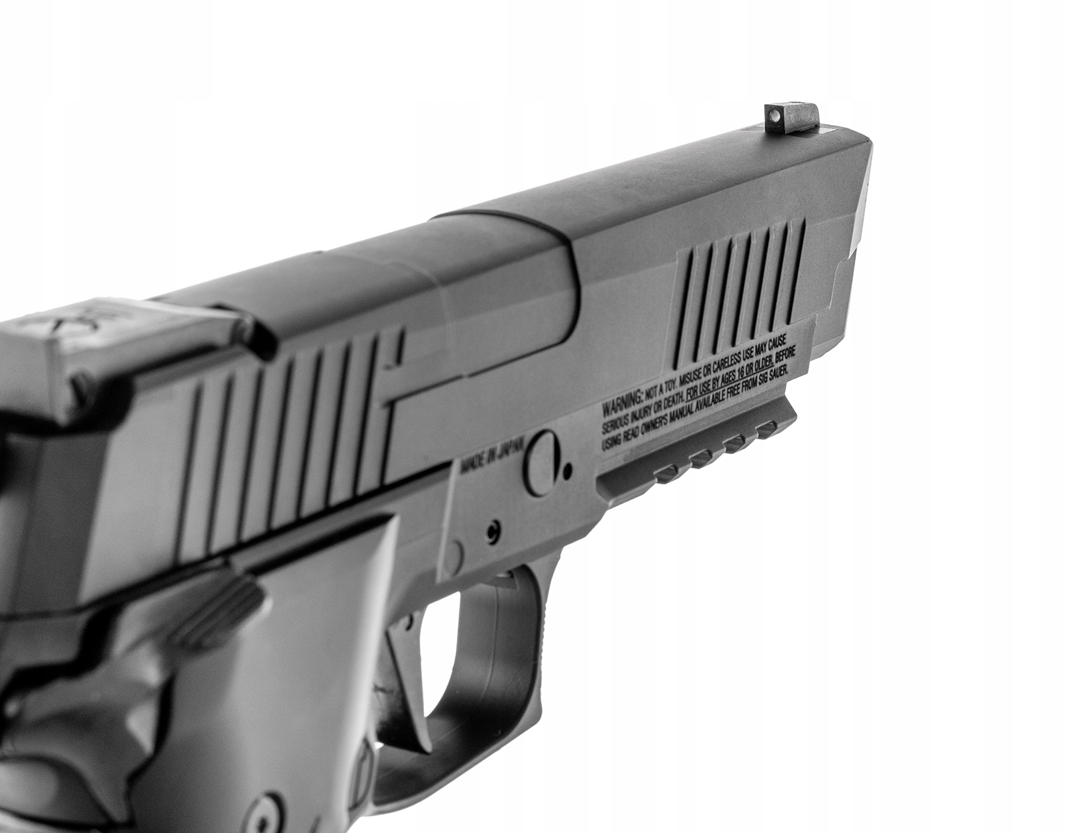 - Na pistolet oraz magazynek naniesione zostały licencjonowane oznaczenia Sig Sauer.