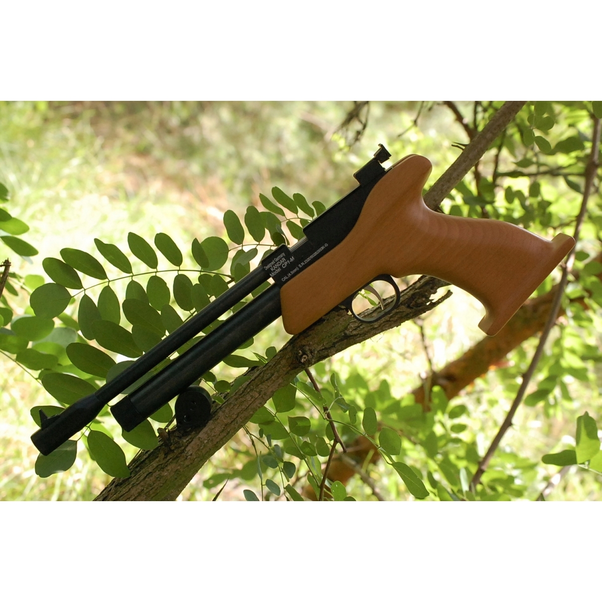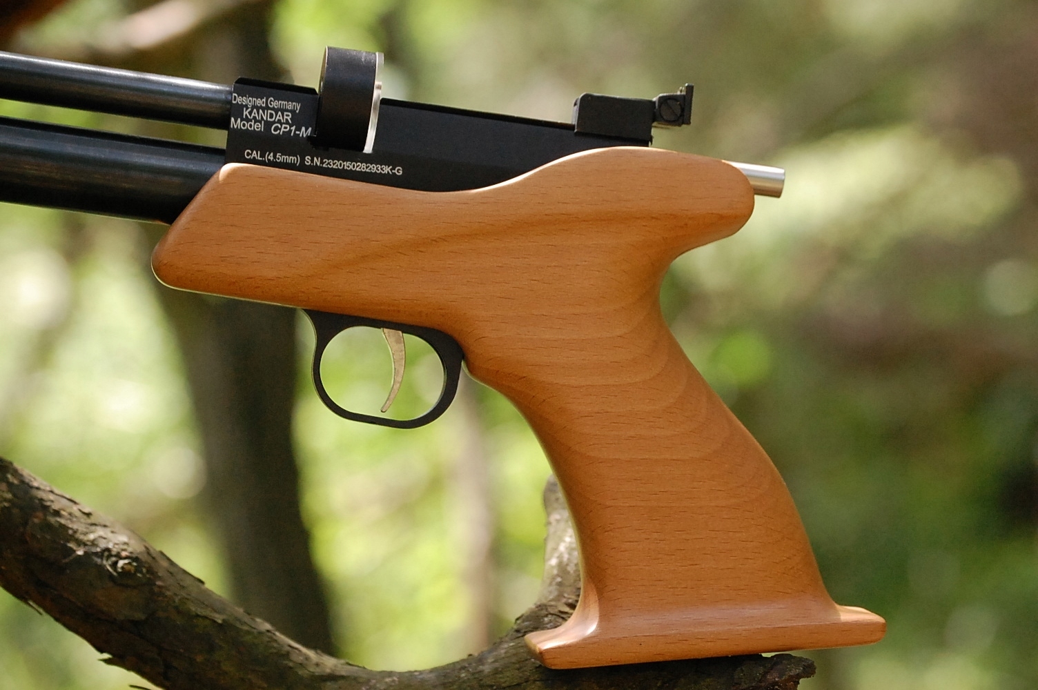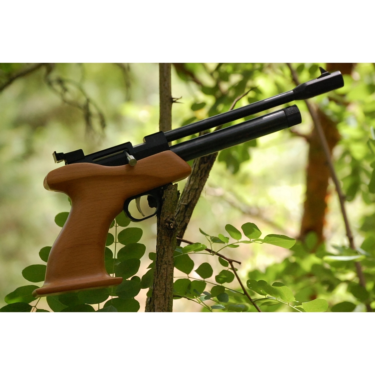 Drewniana rękojeść wykonana z drewna bukowego, została dopasowana tak, aby zapewnić dobry chwyt strzelca. Pistolet wyposażono w szynę 11 mm. na której można montować optykę.