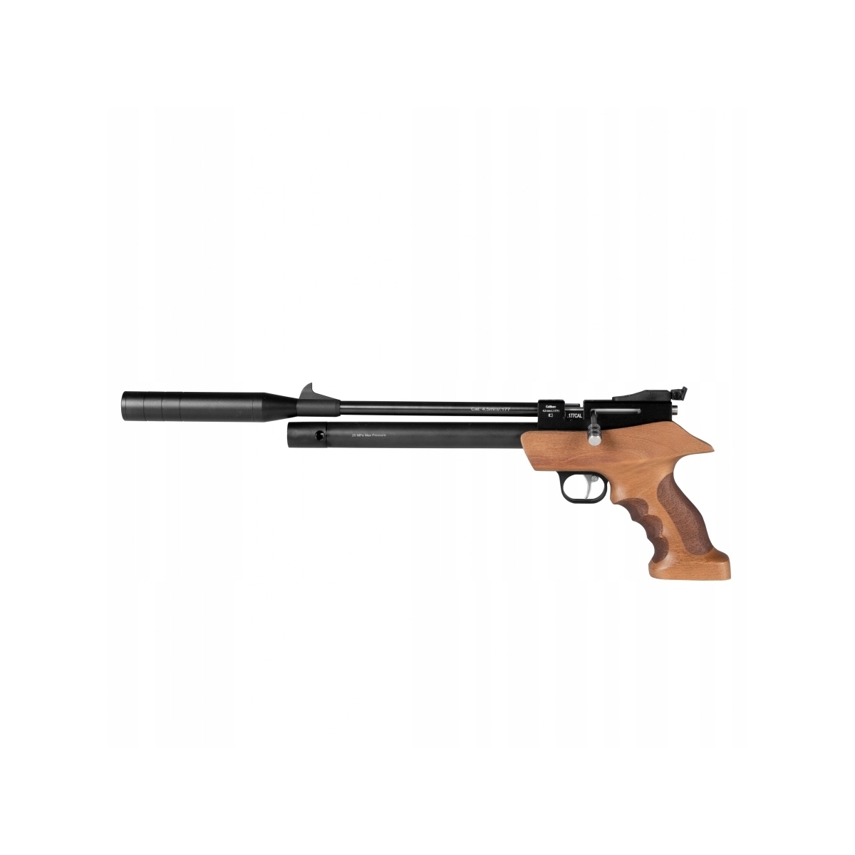 - Wyposażony w gwintowaną lufę o długości 229 mm oraz miękki spust.