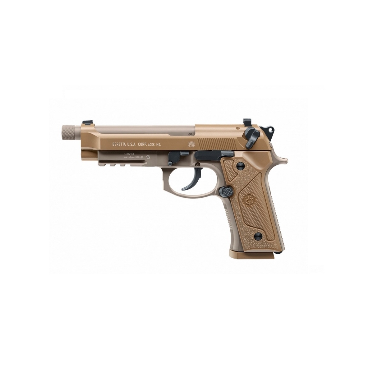 - Beretta M9A3 FM 4,5 mm to wysokiej jakości wiatrówka o budowie i działaniu wiernie imitującym mechanikę broni palnej. Pistolet oprócz typowo rekreacyjnego przeznaczenia pozwala również na naukę prawidłowego zgrywania przyrządów celowniczych, ściągania języka spustowego oraz dobywania broni.