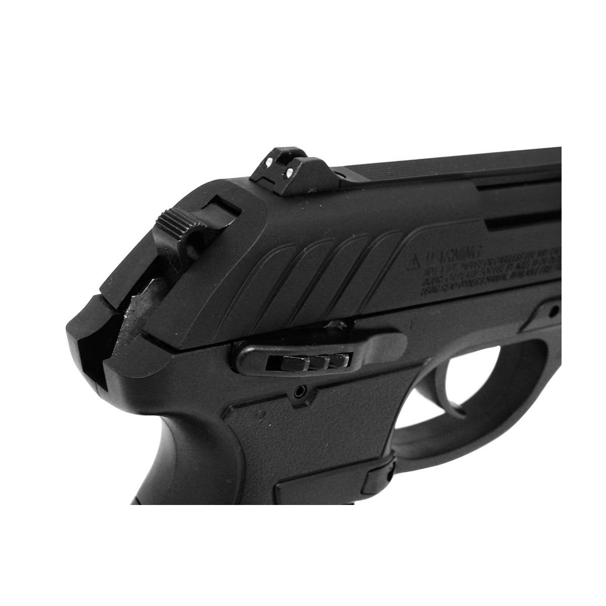 - Dzięki gwintowanej lufie oraz zastosowaniu magazynka rewolwerowego pistolet strzela śrutem grzybkowym (typ Diabolo), dzięki czemu w zależności od celu można dobierać rodzaje: tarczowe, przebijające lub rozbijające.