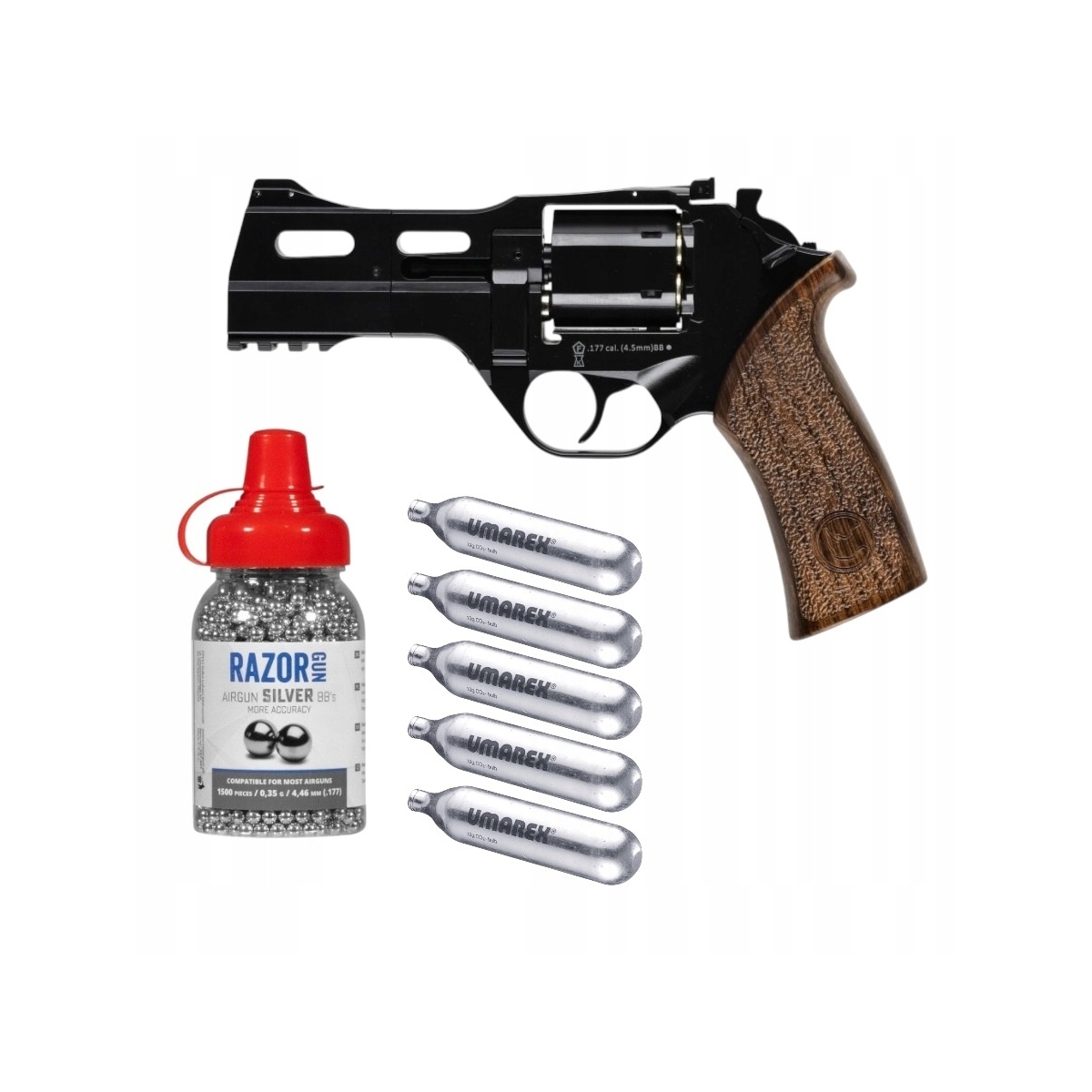 Zestaw: Rewolwer wiatrówka Black Ops Rhino 40DS 4,5 mm + kulki BB 1500 sztuk + 5 x CO2