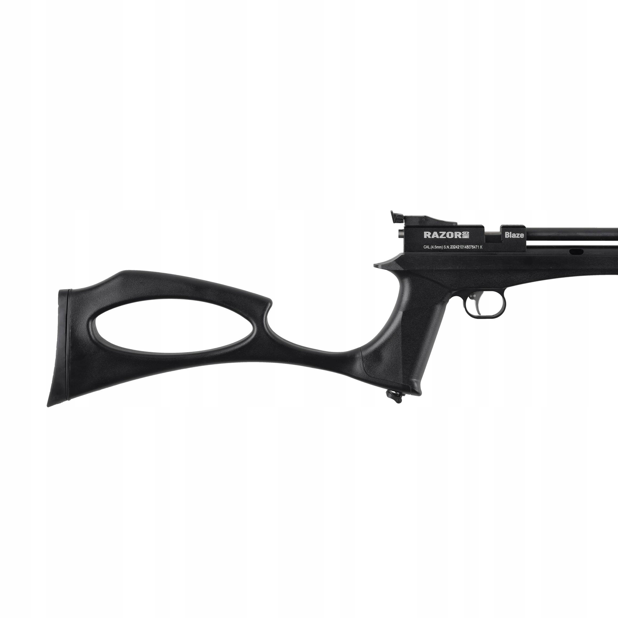 RazorGun Blaze 4,5 mm zasilana jest sprężonym CO2, co sprawia, że jest to wiatrówka pozbawiona odrzutu oraz dużej precyzji. Elementem, który wyróżnia ten model wiatrówki jest odłączana kolba. Dzięki takiej funkcjonalności RazorGun Blaze może być używana jak klasyczny karabinek wiatrówkowy lub pistolet.