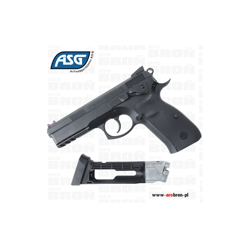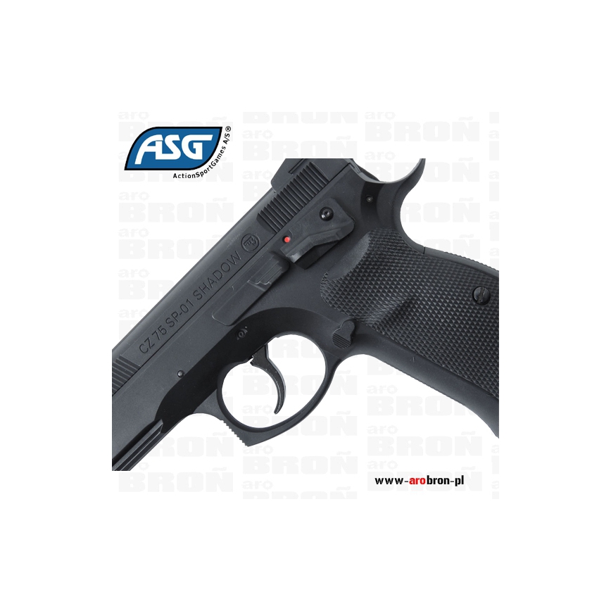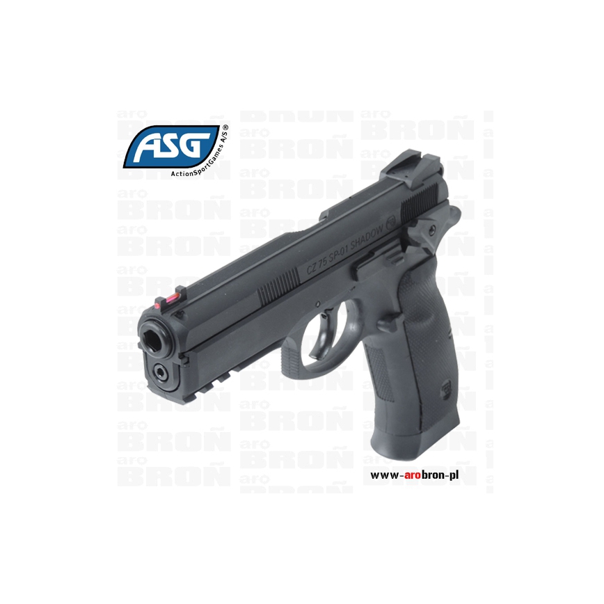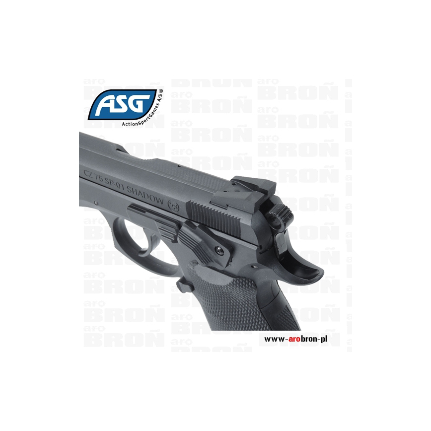 Wiatrówka pistolet CZ75 P-01 Shadow 4,5 mm to licencjonowana replika broni palnej CZ 75 produkowanej przez Česká Zbrojovka. Wykonana została z trwałego polimeru ABS. Rękojeść posiada teksturowanie zapewniające pewny chwyt. Wiatrówka zasilana jest za pomocą 12g kapsuły CO2, która wystarcza na oddanie ok. 80 strzałów. Magazynek mieści 21 sztuk śrutu BB. Pistolet oddaje strzały w dwóch trybach SA/DA. W single action należy przed każdym oddaniem strzału naciągnąć ręcznie kurek, natomiast w double action w momencie naciśnięcia spustu kurek jest automatycznie napinany. Wiatrówka została wyposażona w stałą szczerbinkę i światłowodową muszkę. Pod lufą umieszczono szynę montażową 22mm pozwalającą na zamocowanie dowolnej latarki lub celownika laserowego. Wiatrówka posiada bezpiecznik chroniący przed niekontrolowanym oddaniem strzału.