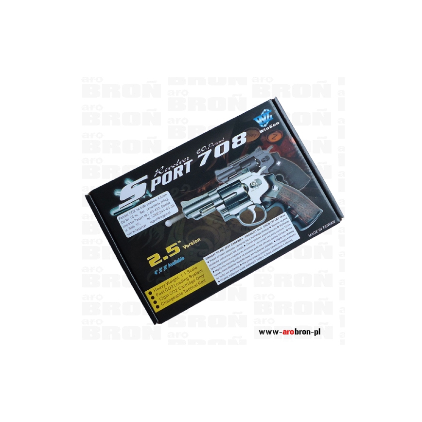 Rewolwer wiatrówka SPORT 708 Full Metal WINGUN WC4-708 - rewolwer ten wykonany jest w całości z metalu, zasilany 12g nabojami Co2. Stanowi pierwszy, najkrótszy model z serii 7xx.