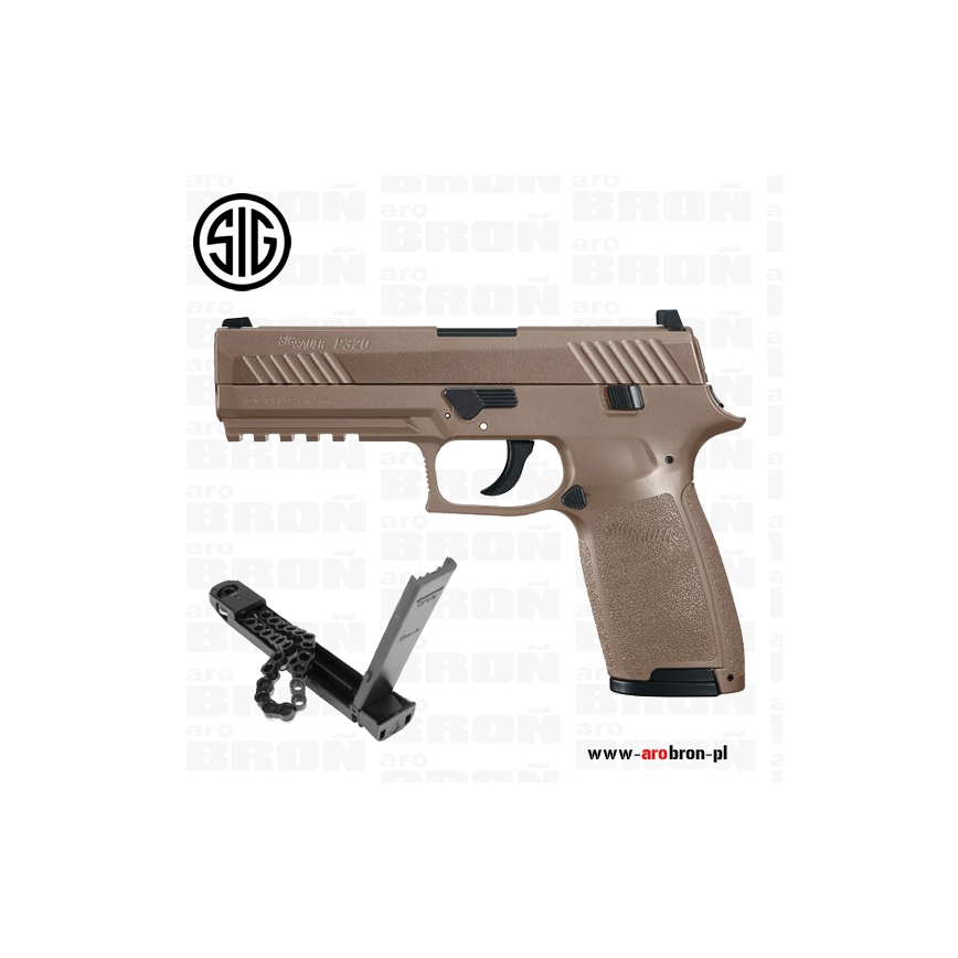 Pistolet wiatrówka SIGSAUER P320 COYOTE 4,5 mm AIR-P320-177-30R-CYT - licencjonowana replika, magazynek 30x śrut diabolo, CO2