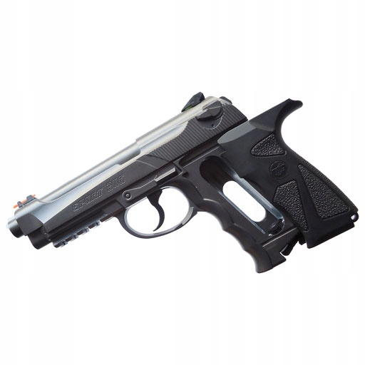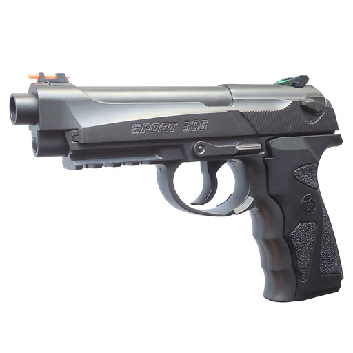 Pistolet wiatrówka Wingun SPORT 306 Full Metal kal. 4.5mm wykonany jest w całości z metalu z wyjątkiem okładzin rękojeści. Strzela wyłącznie stalowymi kulkami 4,5mm (dokładnie 4,46mm).