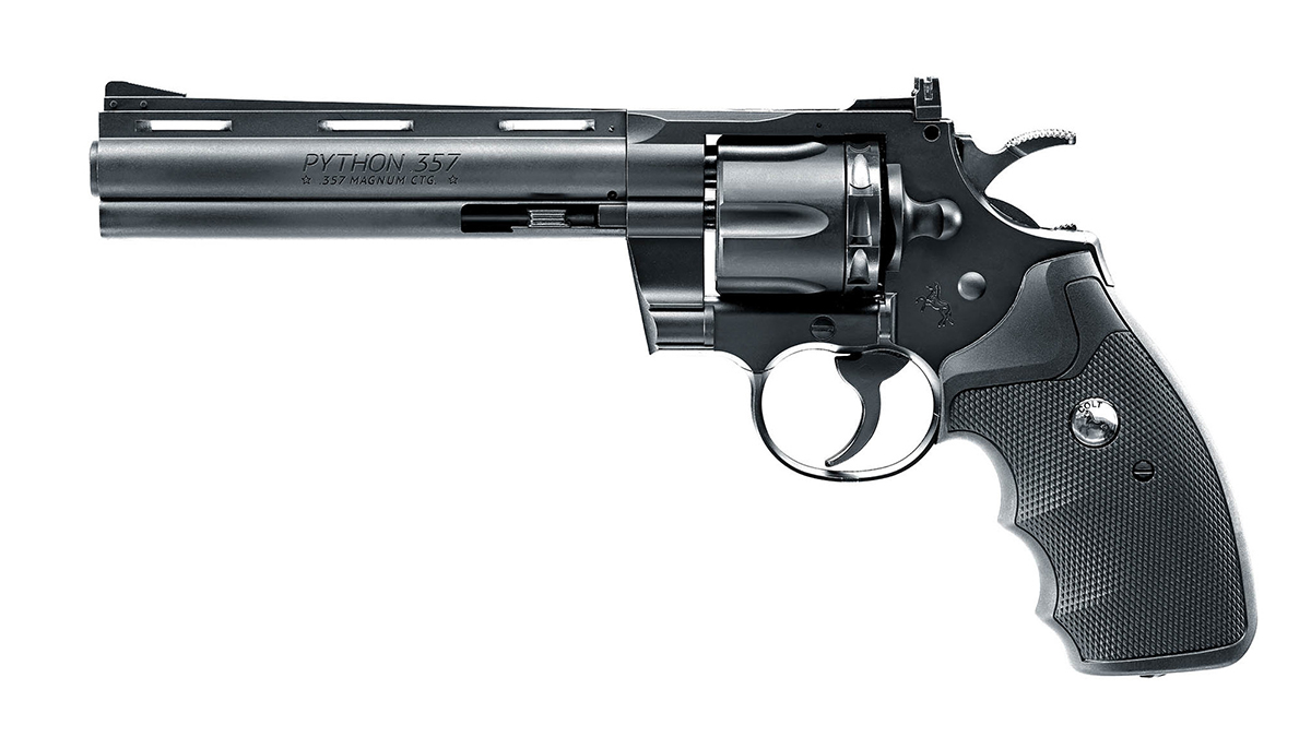Wiatrówka rewolwer Colt Python 6" 4,5mm wykonana z tworzywa to wierna replika Magnum .357. Zasilana jest za pomocą kapsuł 12g CO2.