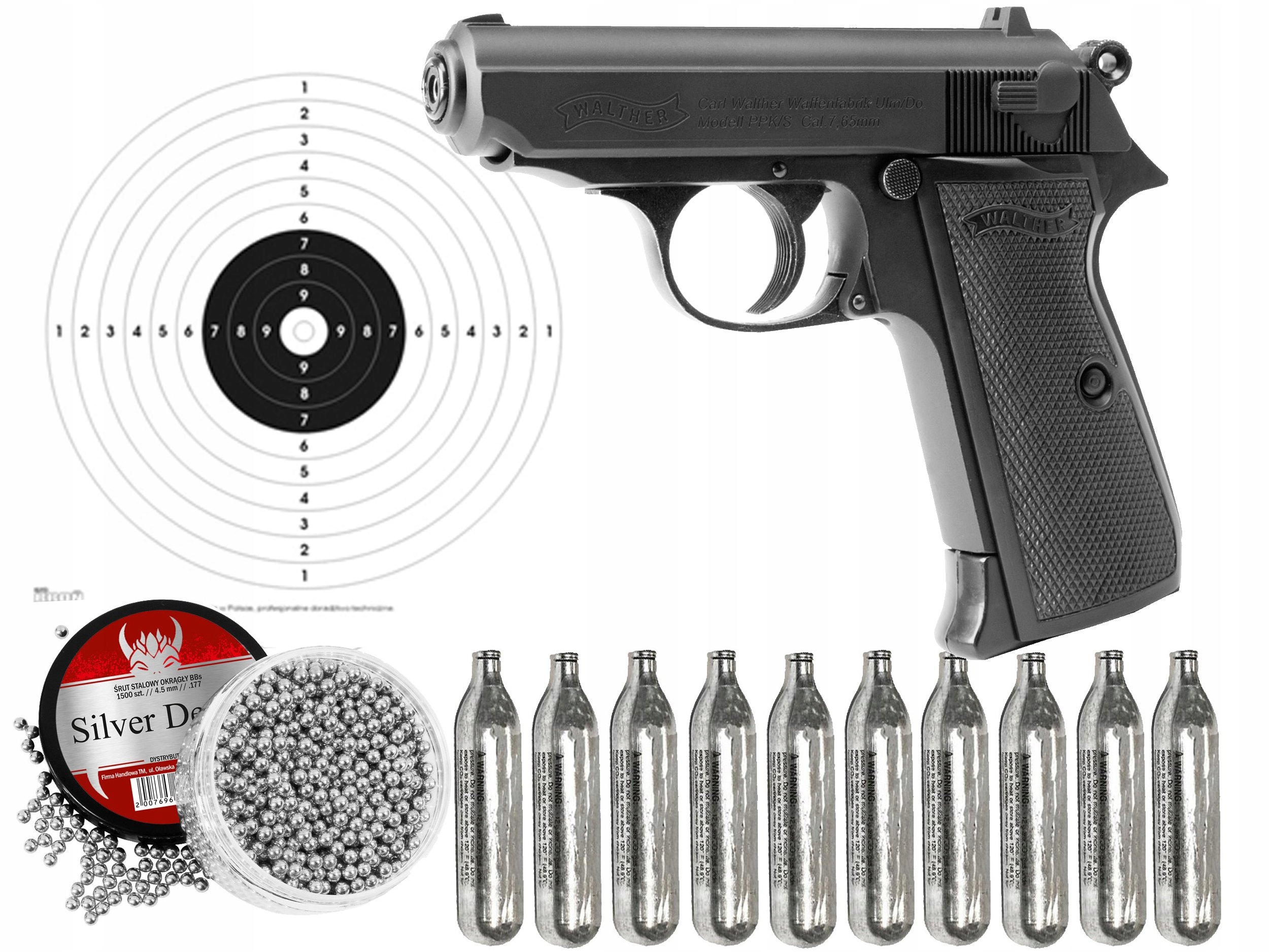 Wiatrówka Pistolet Walther PPK/S +1500BB 10xCO2