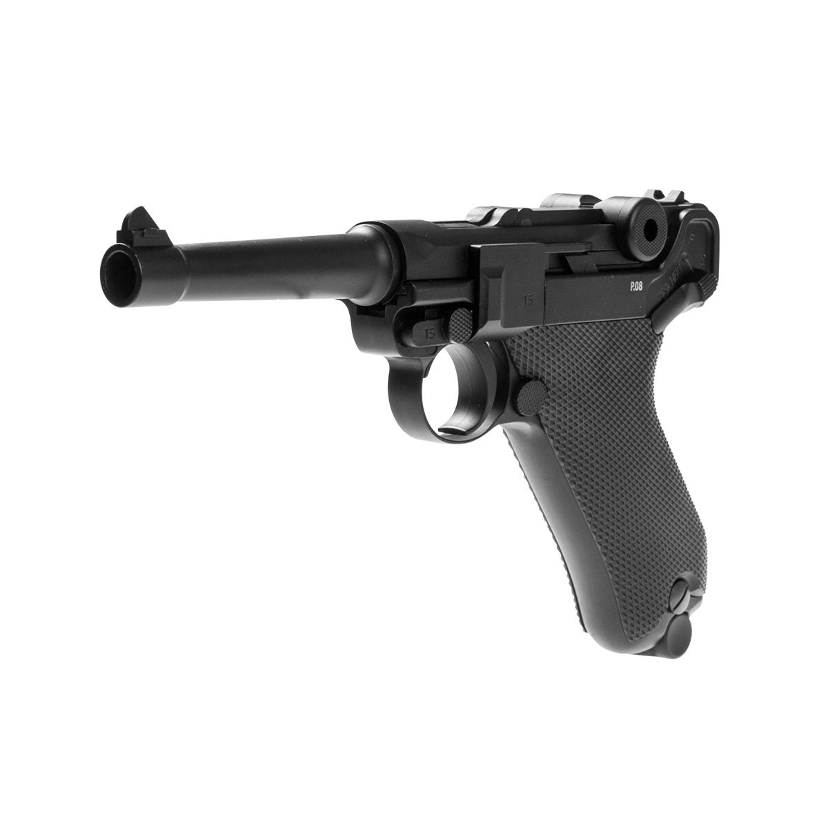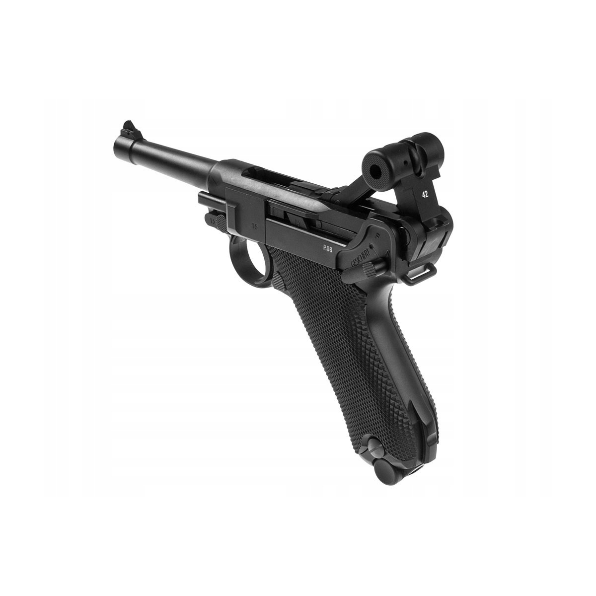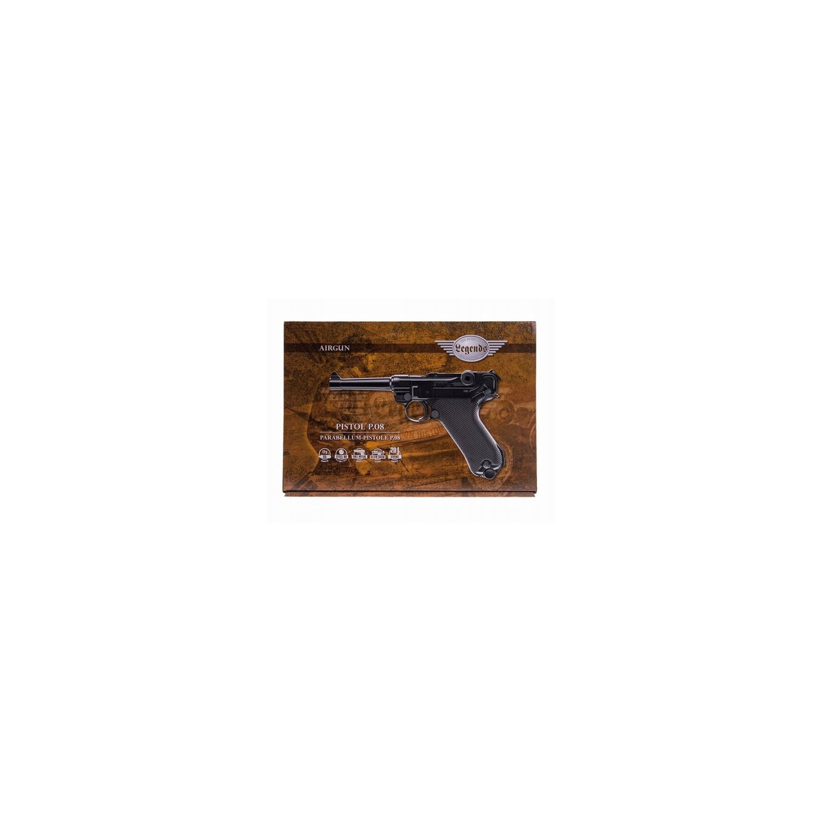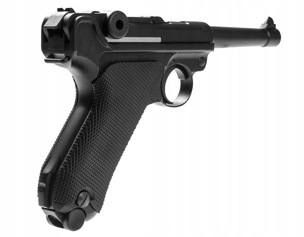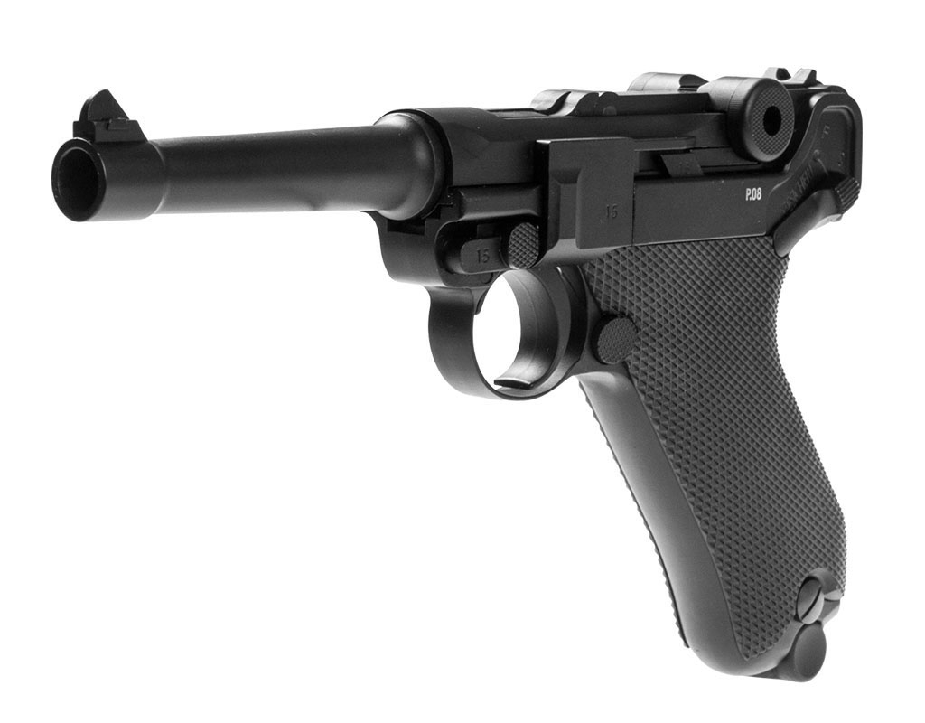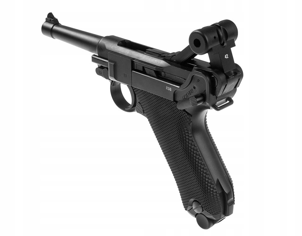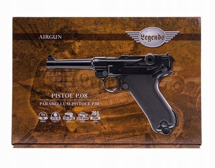 Wiatrówka LEGENDS P.08 Blow Back - pistolet wiatrówka niemieckiego producenta UMAREX z serii Legends, będąca repliką legendarnego P.08 Parabellum, pistoletu z okresu I Wojny Światowej. Wiatrówka posiada w pełni metalową konstrukcję, zasilana z kapsuły Co2 12g, na śrut BB.