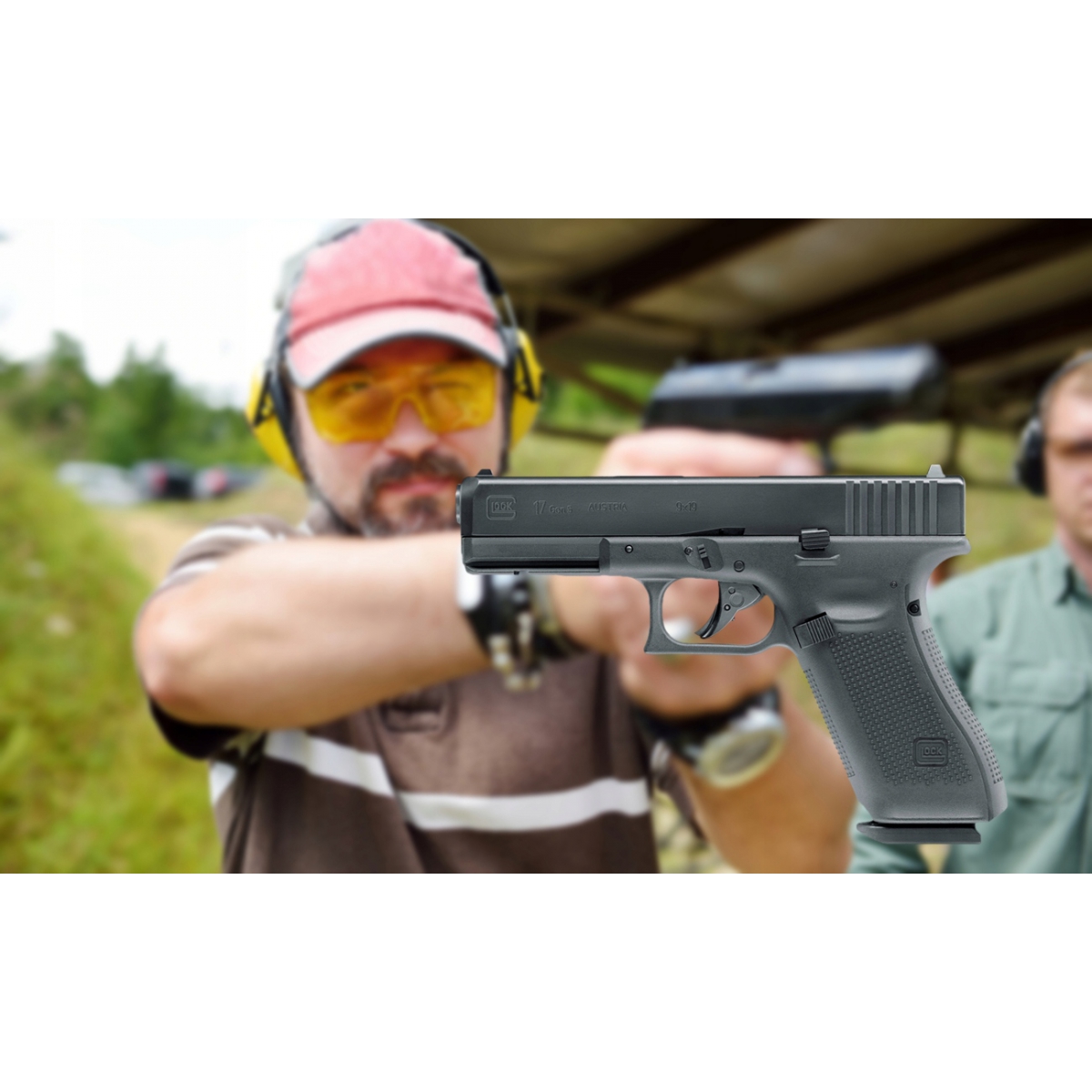 Wiatrówka Pistolet Glock 17 5 Gen. 4,5 mm to replika jednego z najbardziej rozpoznawalnych pistoletów na świecie. Zasilana za pomocą kapsuły 12g CO2. Model ten został wyposażony w magazynek na 18szt. śrutu BB. Realizmu dodaje system odrzutu zamka blow back.