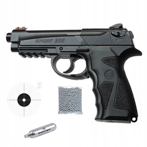 Wiatrówka Beretta WC-4 306B SPORT- model podobny do Beretty 90 TWO. Strzela wyłącznie stalowymi kulkami 4,5mm (dokładnie 4,46mm).