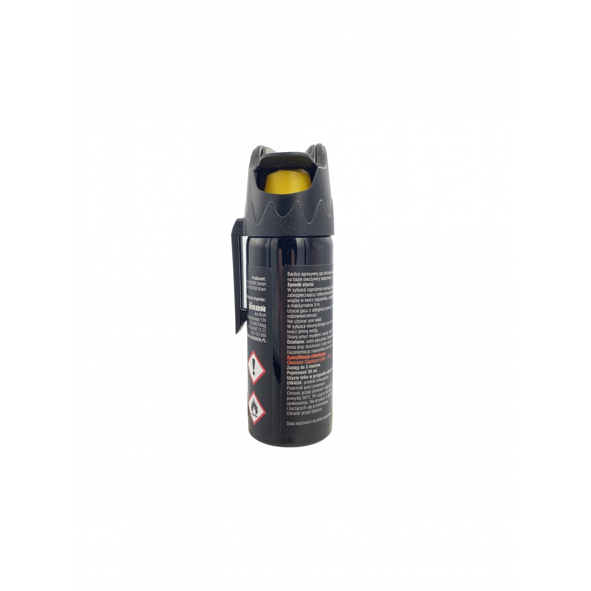 Pojemnik o pojemności 50 ml jest wielorazowego użytku - gaz pieprzowy można dawkować - tak długo jak trzymamy wciśnięty przycisk tak długo gaz w postaci stożka gazu jest wyzwalany z pojemnika.