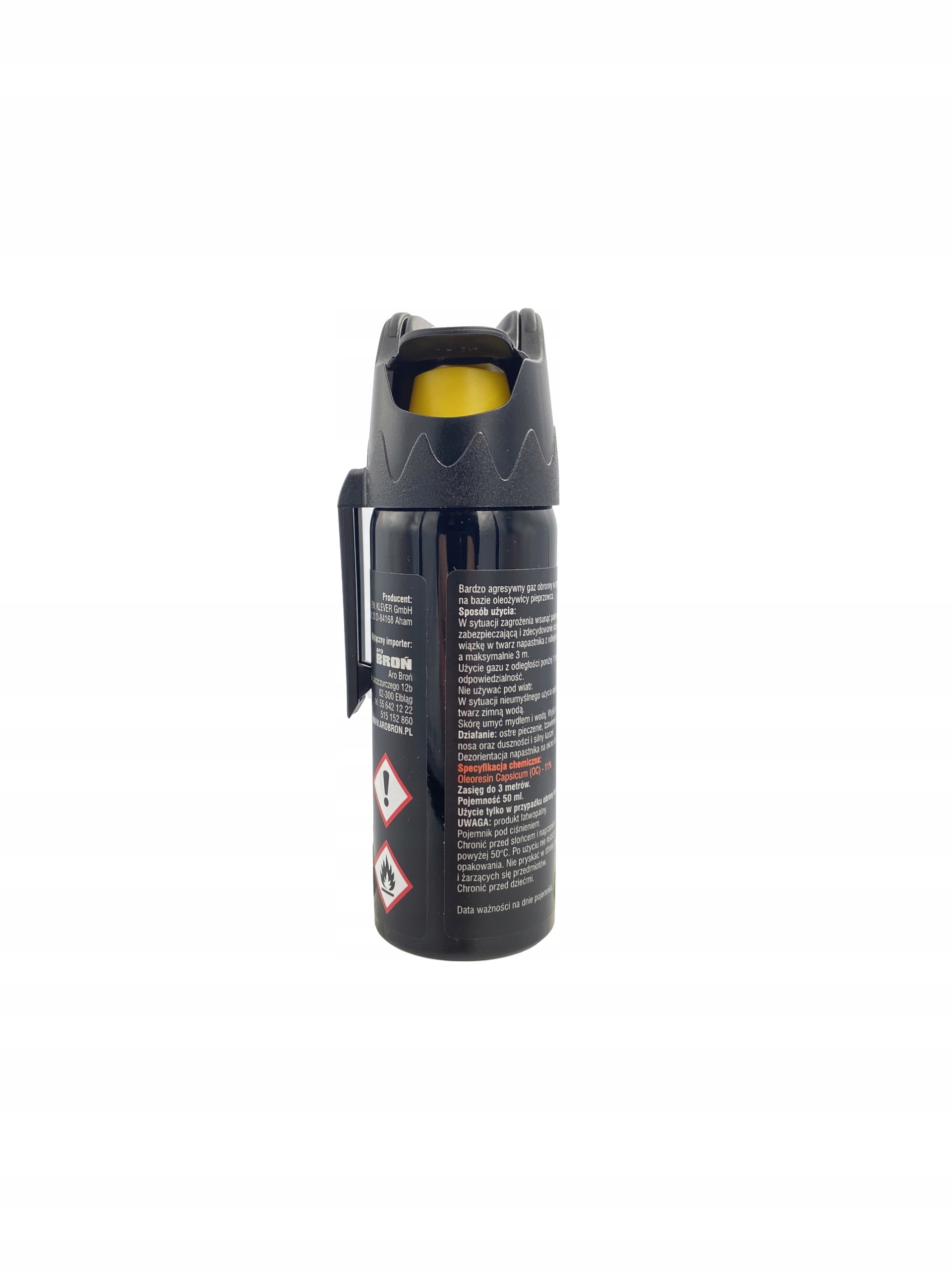 - Prosta budowa czyni gaz wytrzymałym w użyciu a montowany seryjnie klips do paska pozwala na wygodne przenoszenie i szybkie w użycie w razie potrzeby.