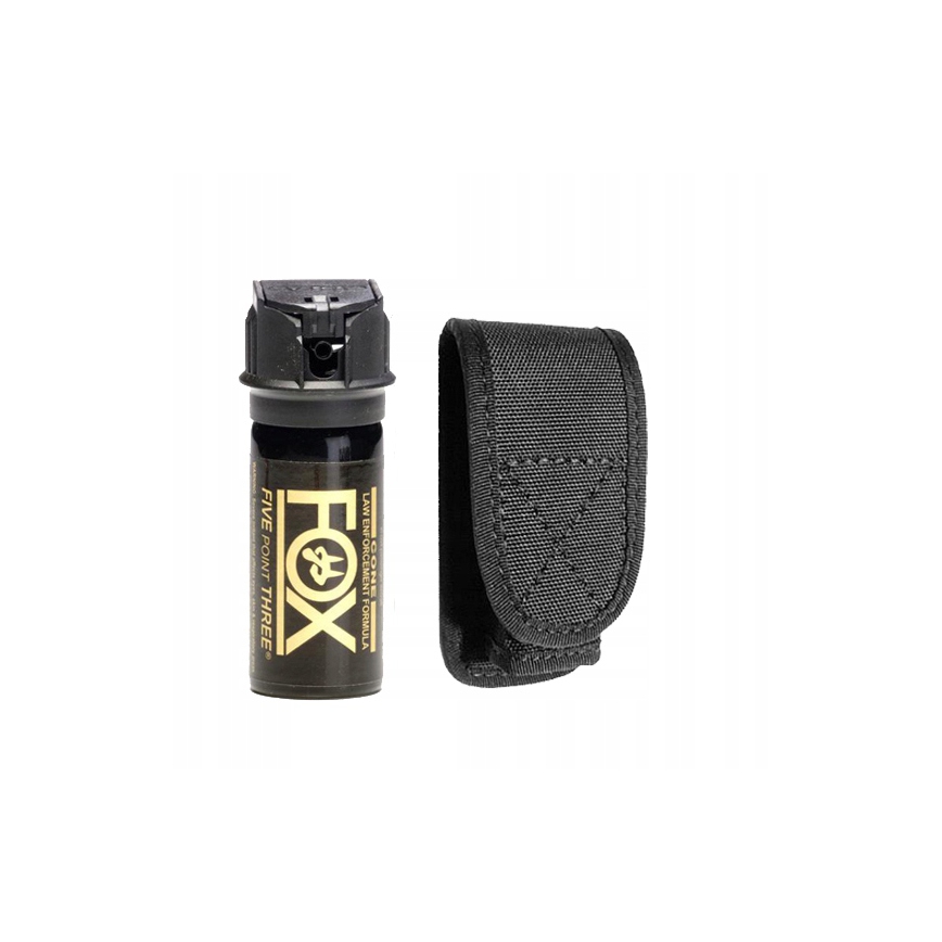 Gaz pieprzowy Fox Labs GOLD cone 43ml (Five point Three) - to najmocniejszy gaz o pojemności 43 ml rozpylany w formie stożka (chmura), co umożliwia skuteczne obezwładnienie napastnika. Nie palny. Zawiera 5 300 000 SHU. Stosowane przez służby mundurowe,domy poprawcze, wiezienia czy też agencje policji kryminalnej.