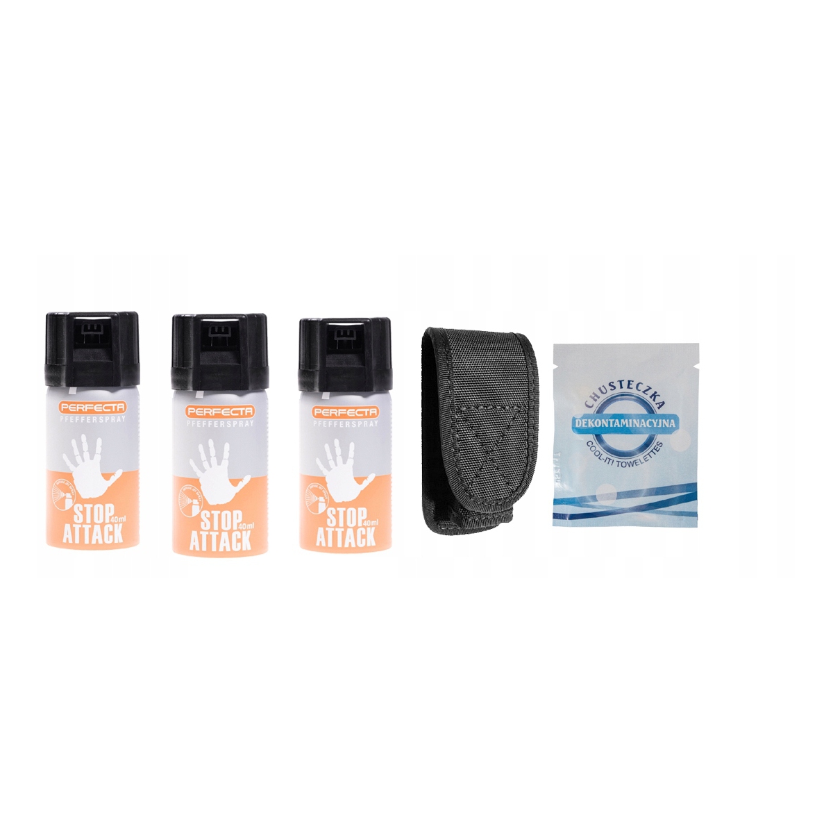 3x Gaz pieprzowy Perfecta Stop Attack 40ml stożek+kabura+chusteczka
