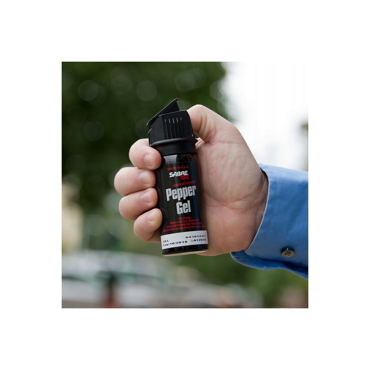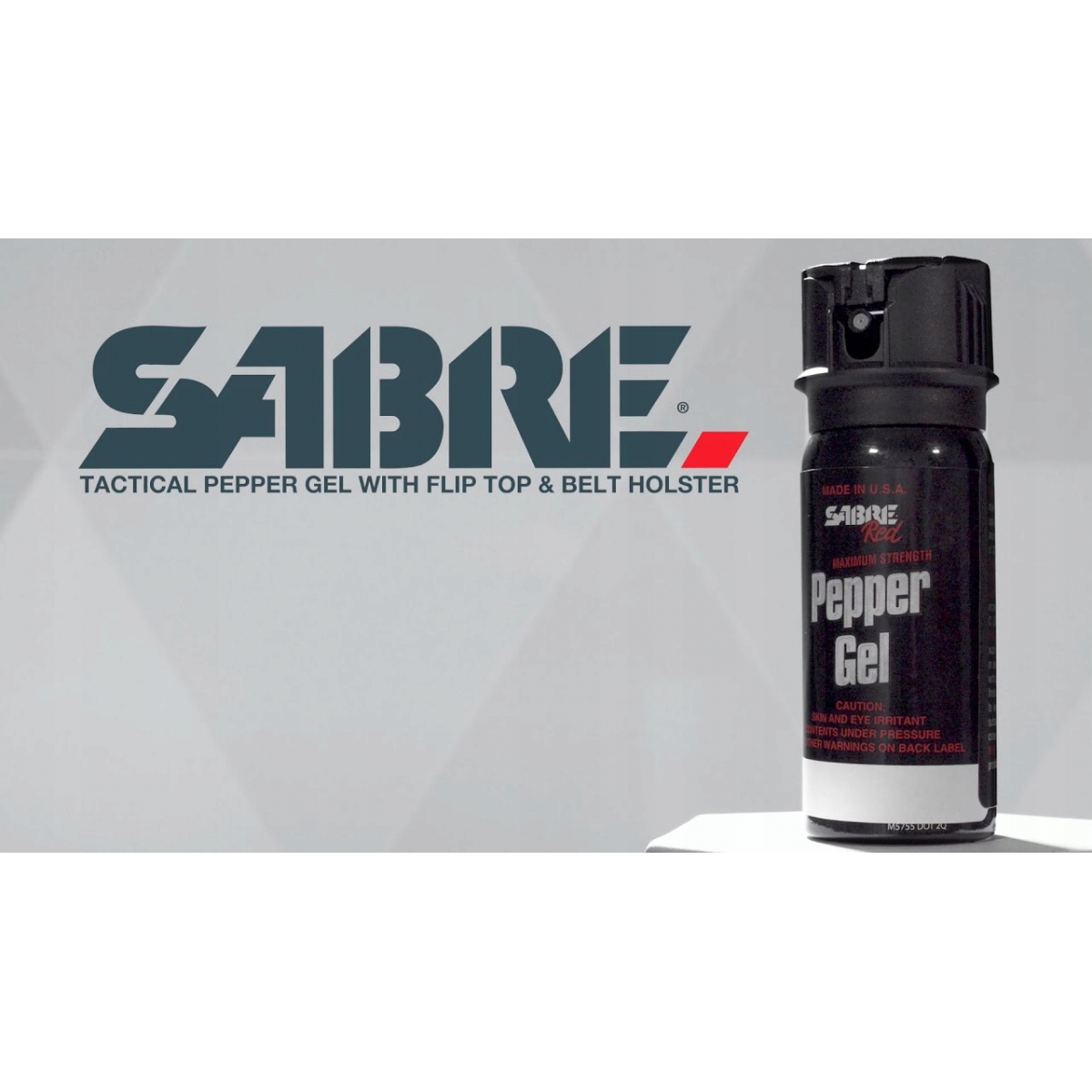 Gaz pieprzowy SABRE Tactical GEL - duży pojemnik (ok. 53ml) amerykańskiej firmy Sabre Red stworzony do zastosowań taktycznych, także w ochronie. Pojemnik z blokadą w formie podnoszonej klapki Flip-open. Gaz wyrzucany jest na odległość aż do 6 metrów w postaci gęstego żelu.