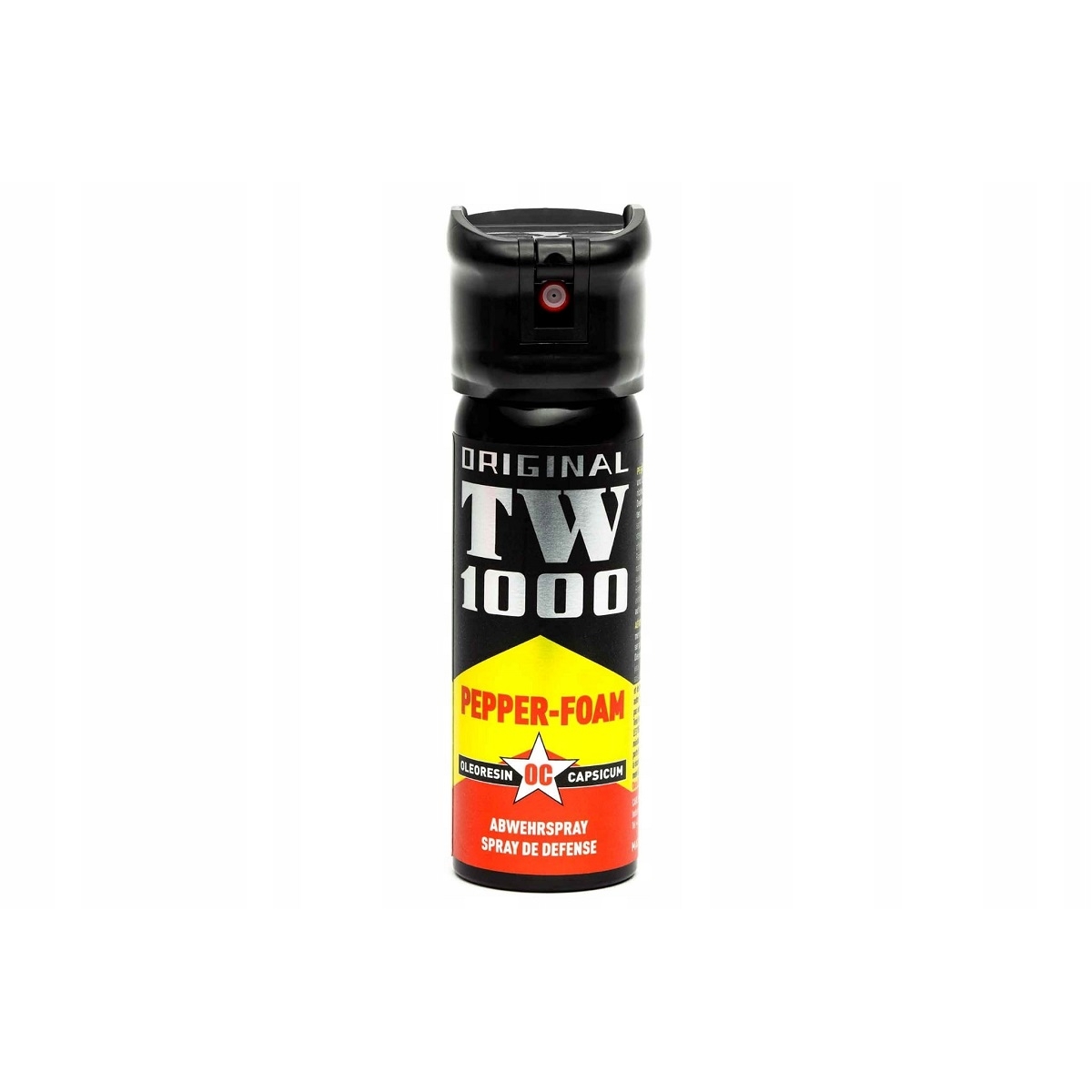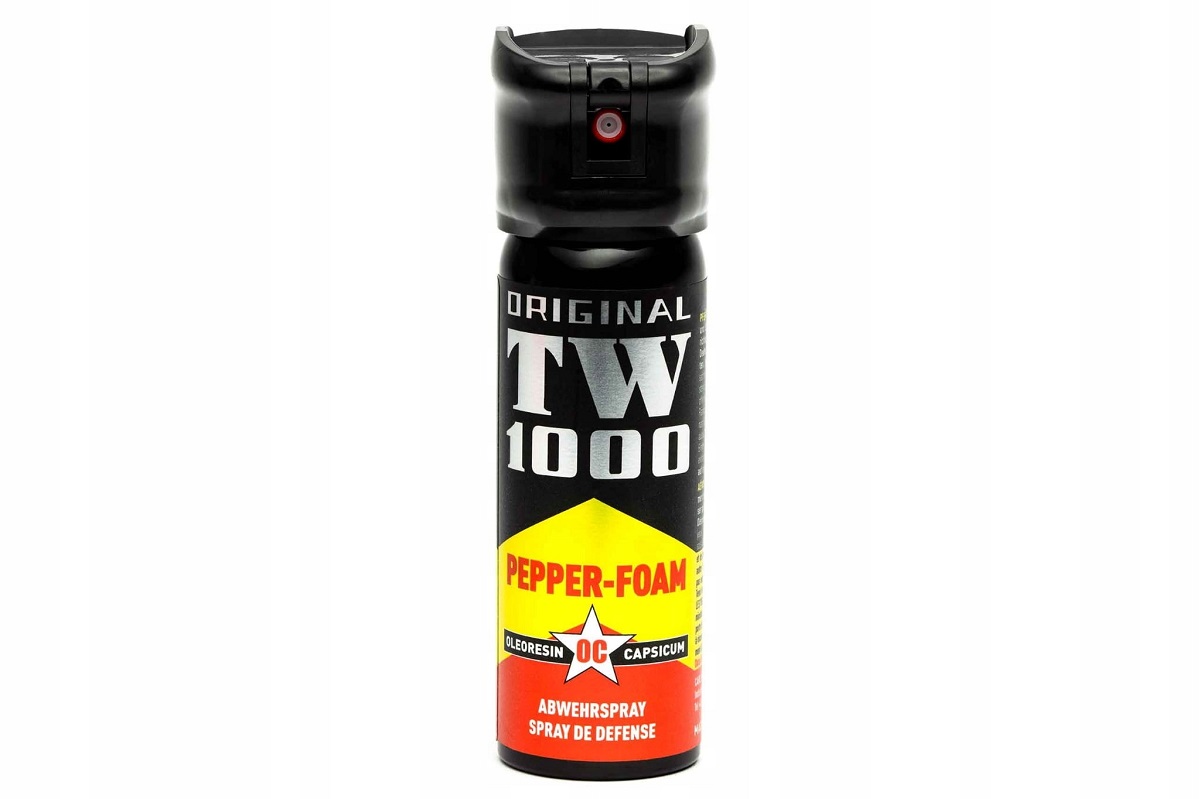 Gaz pieprzowy obezwładniający piana TW 1000 na bazie środka biologicznego Alkaloidu. Najlepiej sprawdza się w pomieszczeniach, ale może być również stosowany na zewnątrz. Po spryskaniu i przywarciu do skóry napastnika piana zwiększa swoją objętość. Gaz jest skuteczny na osoby pod wpływem alkoholu i środków odurzających. Bezpośrednim efektem działania gazu jest paraliż układu oddechowego, pieczenie oczu, nosa oraz duszenie uniemożliwiające dalszy atak napastnika. Ma również duże działanie na agresywne zwierzęta nie czyniąc obrażeń. Posiada blokadę Flip-Top, zabezpieczającą przed przypadkowym użyciem gazu