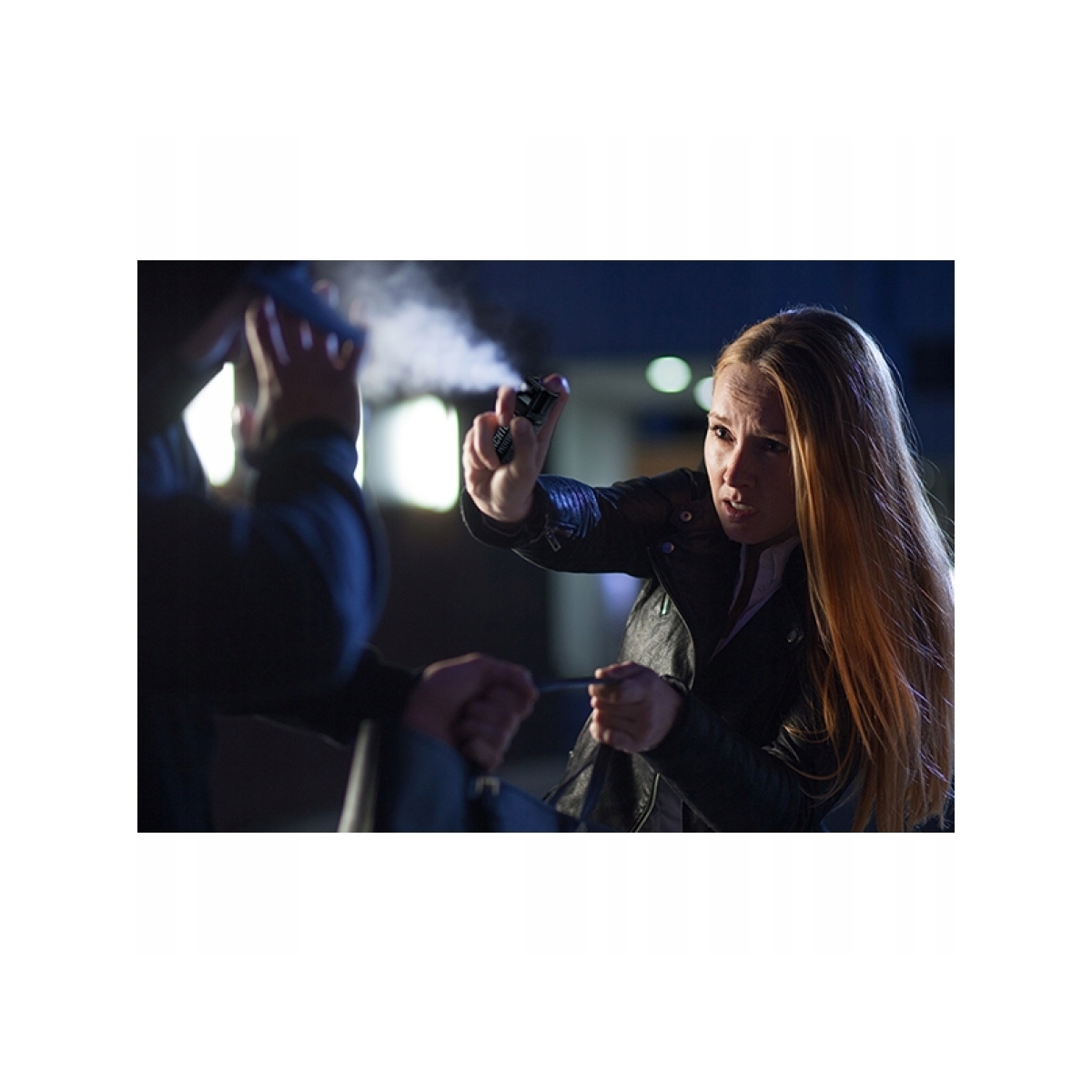 - W sytuacji zagrożenia wycelować w stronę linii oczu napastnika i zdecydowanie wcisnąć dźwignię.