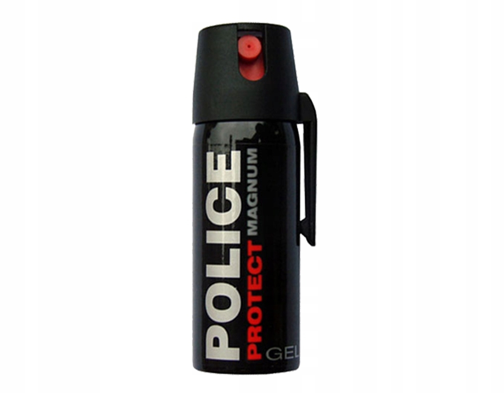 Gaz pieprzowy Police Protect Magnum Gel 50ml - jeden z najsilniejszych gaz dostępny dla cywili. Police Protect wersja Magnum posiada 11% stężenie olejku pieprzowego. Gaz obezwładniający w postaci strumienia, miotana substancja jest żelowa. Substancja drażniąca pozwala skutecznie obezwładnić napastnika. Skuteczny także na osoby pod wpływem alkoholu i środków odurzających. Pojemnik posiada klips do paska, który pozwala na wygodne przenoszenie i szybkie w użycie w razie potrzeby.
