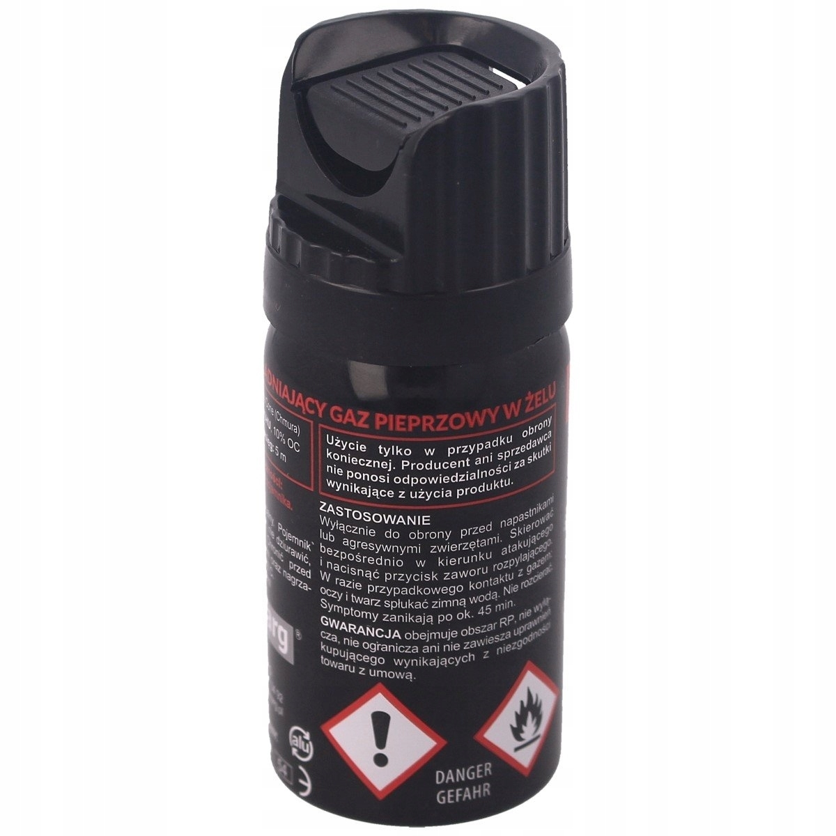 - Zawiera 10% środka drażniącego OC (Oleoresin Capsicum) o sile 2 milionów SHU (jednostki ostrości Scoville'a).