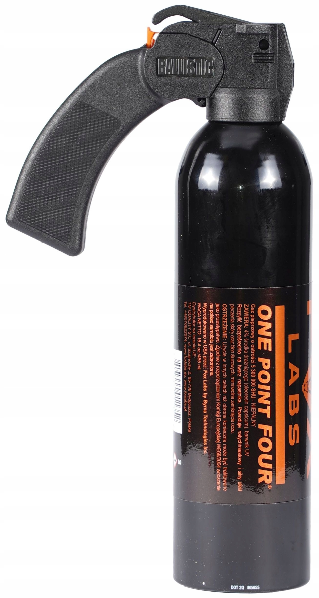 Gaz pieprzowy Fox Labs strumień 485ml (One Point Four) - to najmocniejszy gaz o pojemności 56 ml rozpylany w formie stożka (chmura), co umożliwia skuteczne obezwładnienie napastnika. Nie palny. Posiada zwiększone stężenie kapsaicyny 4% oraz ostrość aż 5 300 000 SHU. Stosowany przez służby mundurowe, domy poprawcze, więzienia czy też agencje policji kryminalnej.