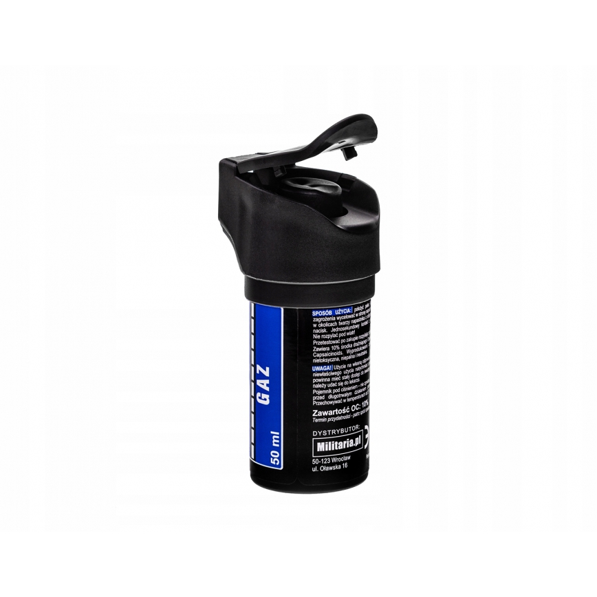 Gaz pieprzowy POLICYJNY strumień 50ml - oto mały i poręczny zasobnik gazu obronnego o bardzo wysokim stężeniu kapsaicyny alkalidowej. Umożliwia ono skuteczną obronę przed napastnikami, także będących pod wpływem alkoholu lub środków psychoaktywnych, przez co często nie odczuwają oni wystarczająco silnych objawów użycia przeciwko nim słabszych gazów.