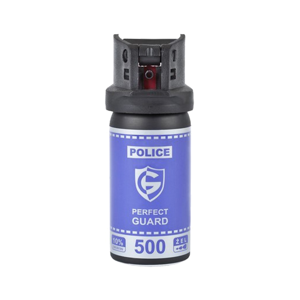 Police Perfect Guard PG500 50ml - przeznaczony do obrony w sytuacji zagrożenia posiadający 2 mln substancji drażniącej. Postać strumienia żelu pozwala na obronę przed napastnikami będącymi pod wpływem alkoholu czy narkotyków na odległość do 4 metrów. Nie zmienia swojego kierunku pod wpływem wiatru. Gaz powoduje łzawienie oczu, nosa oraz duszności uniemożliwiające dalszy atak. Pojemność 50 ml pozwala na kilkukrotne użycie.