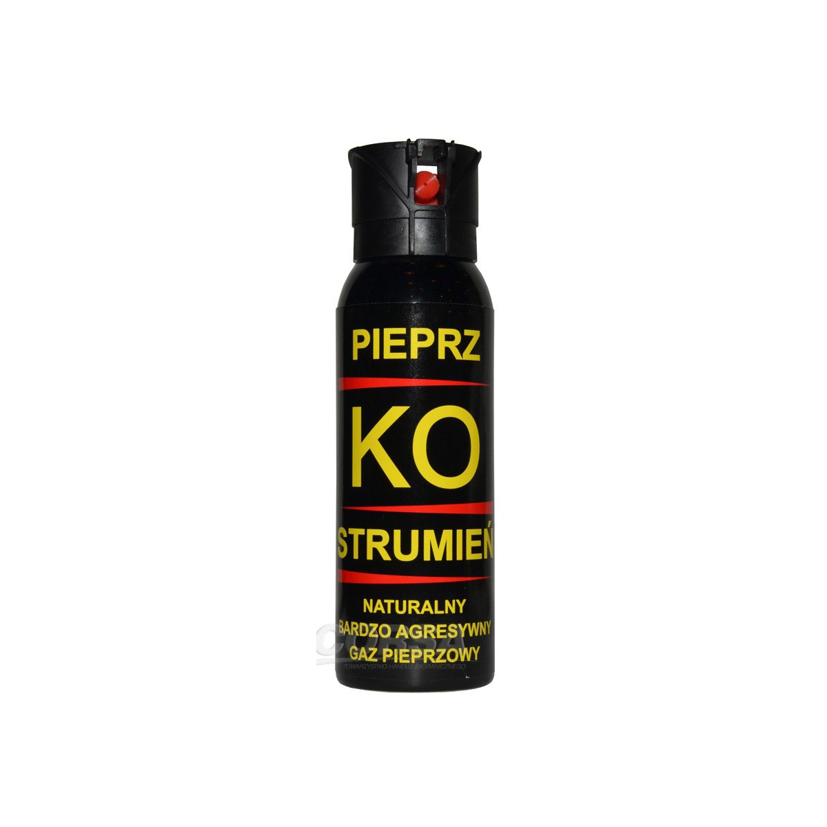 Gaz pieprzowy KO JET strumień 100ml - gaz obronny na bazie środka biologicznego Alkaloidu w formie strumienia, wyprodukowany przez niemiecką firmę Klever. Substancja drażniąca wydostaje się z miotacza w postaci żelu, co daje możliwość dokładnego ukierunkowania strumienia. Ten ręczny miotacz gazu działa również na ludzi pod wpływem alkoholu i środków odurzających. Gaz pieprzowy działa drażniąco na śluzówki, powodując ostre pieczenie oczu, katar, kaszel, a także silne duszenie się. Dzięki temu uniemożliwia napastnikowi dalszy atak i w znacznym stopniu utrudnia jego poruszanie się.