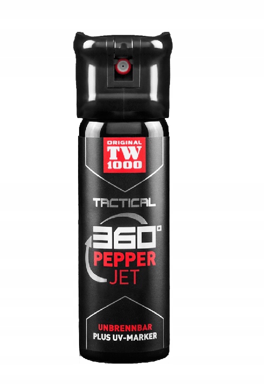 Gaz pieprzowy TW1000 JET 45ml - gaz obronny na bazie środka biologicznego Alkaloidu w formie strumienia, wyprodukowany przez niemiecką firmę Hoernecke Chemie. Skuteczny także na osoby pod wpływem alkoholu i środków odurzających. Bezpośrednim efektem działania gazu jest paraliż układu oddechowego, pieczenie oczu, nosa oraz duszenie uniemożliwiające dalszy atak napastnika. Umożliwia obronę przed dużą liczbą napastników jednocześnie.