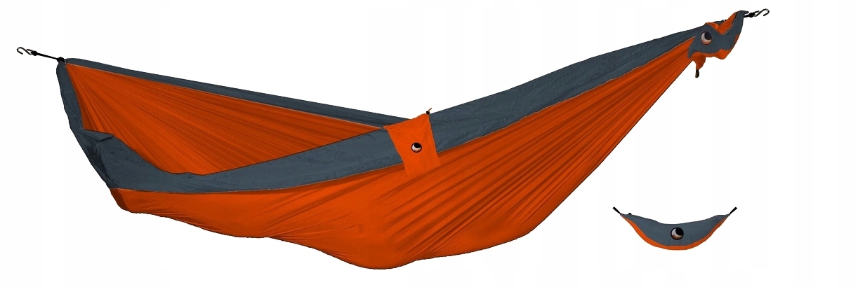 HAMAK TTTM ORANGE/GREY - dwuosobowy, turystyczny hamak spadochronowy stworzony dla podróżników. Dopuszczalne obciążenie wynosi 200 kg.