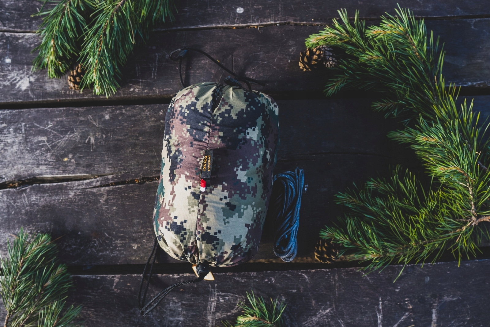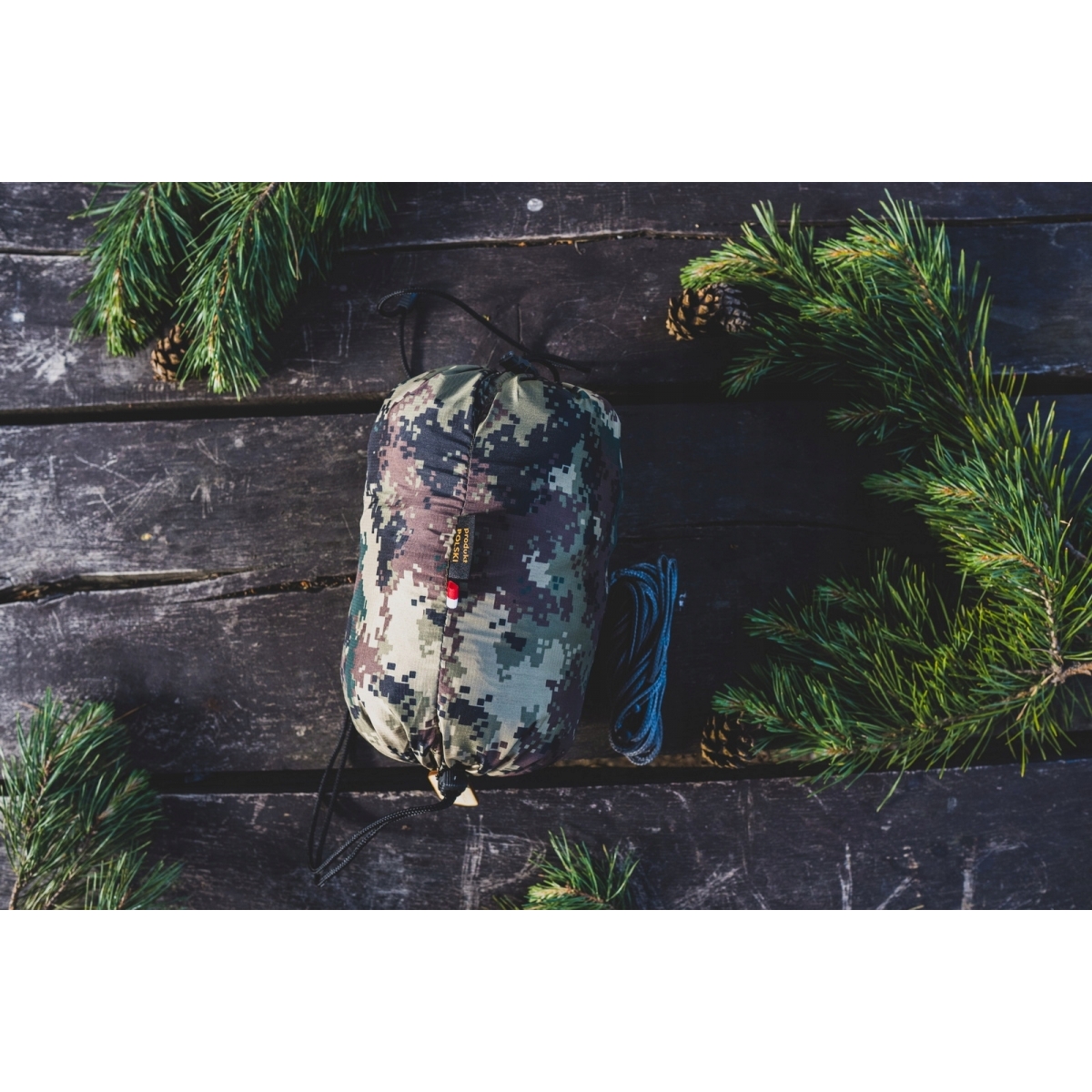 Hamak Lekki Ważka V2 Camo z Moskitierą - bardzo lekki hamak turystyczny, wykonany z tkaniny poliamidowej. Zintegrowana moskitiera, o ściegu poniżej 1mm, zapewnia odpoczynek wolny od insektów i owadów. W komplecie znajduje się także regulowana cięciwa, która poprawia jakość korzystania z hamaka i ułatwia rozkładanie. Natomiast elastyczność i wytrzymałość, całej konstrukcji umożliwia, wygodne rozwieszenie hamaka do 7 metrów między drzewami. Hamak mimo swojej niewielkiej wagi (625g) posiada udźwig do 275 kg.